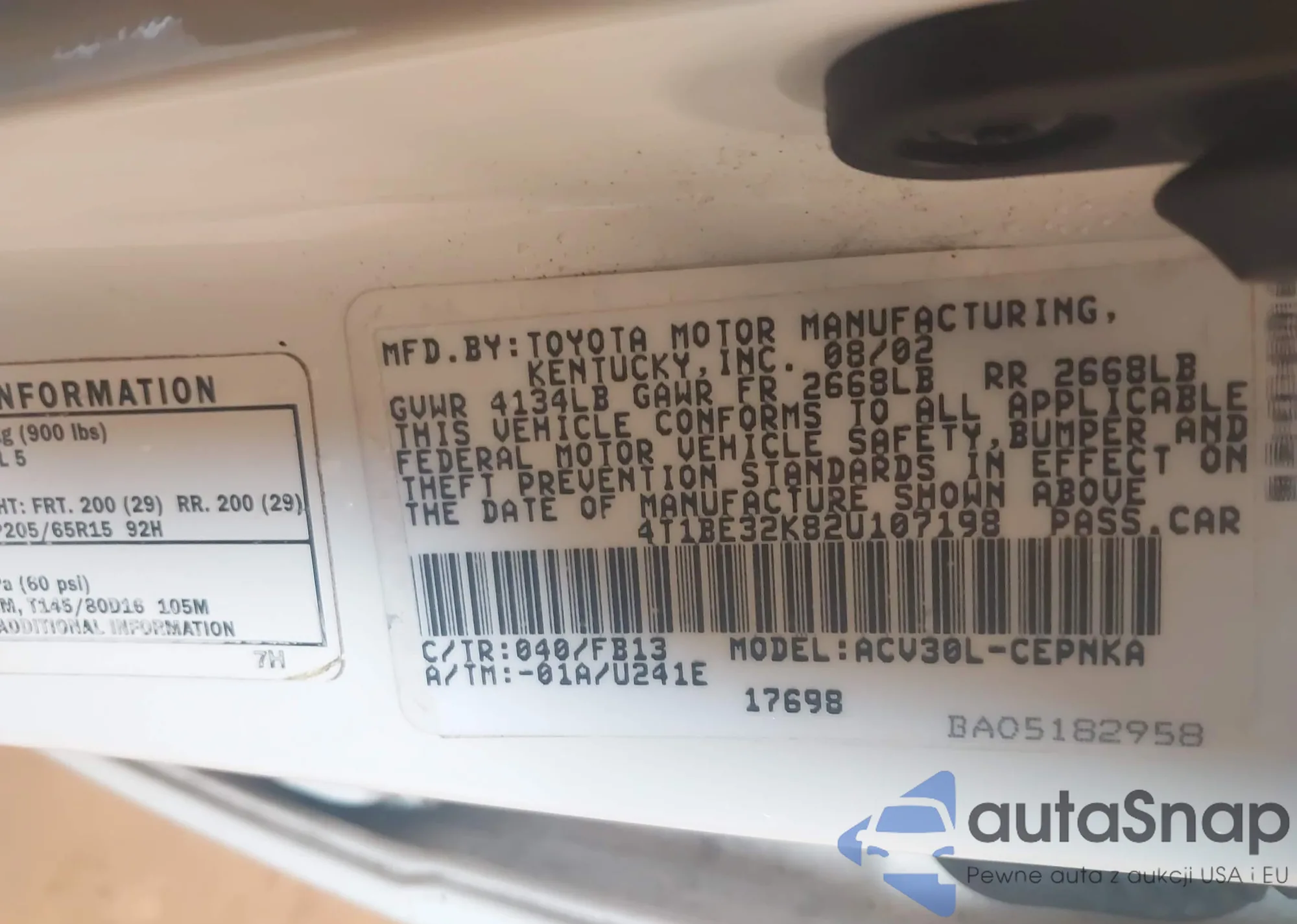 • VIN 4T1BE32K82U107198