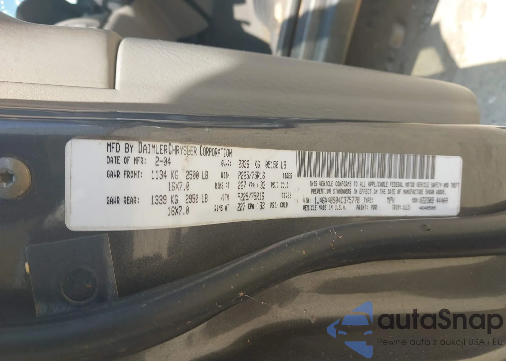 • VIN 1J4GX48S04C375778