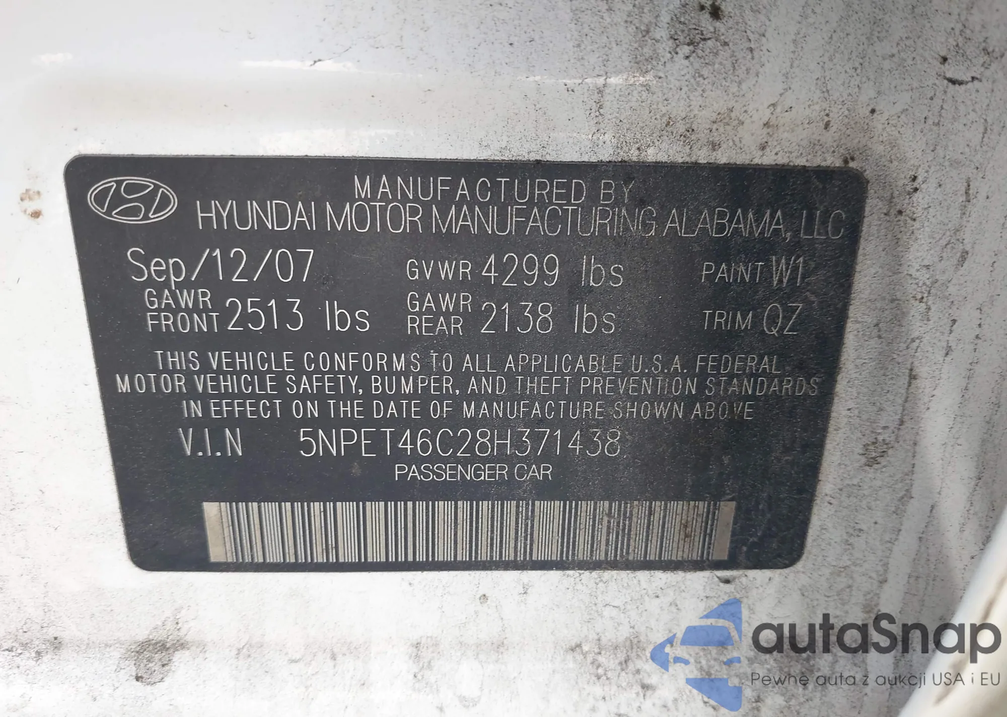 LOT: 43297413 VIN: 5NPET46C28H371438