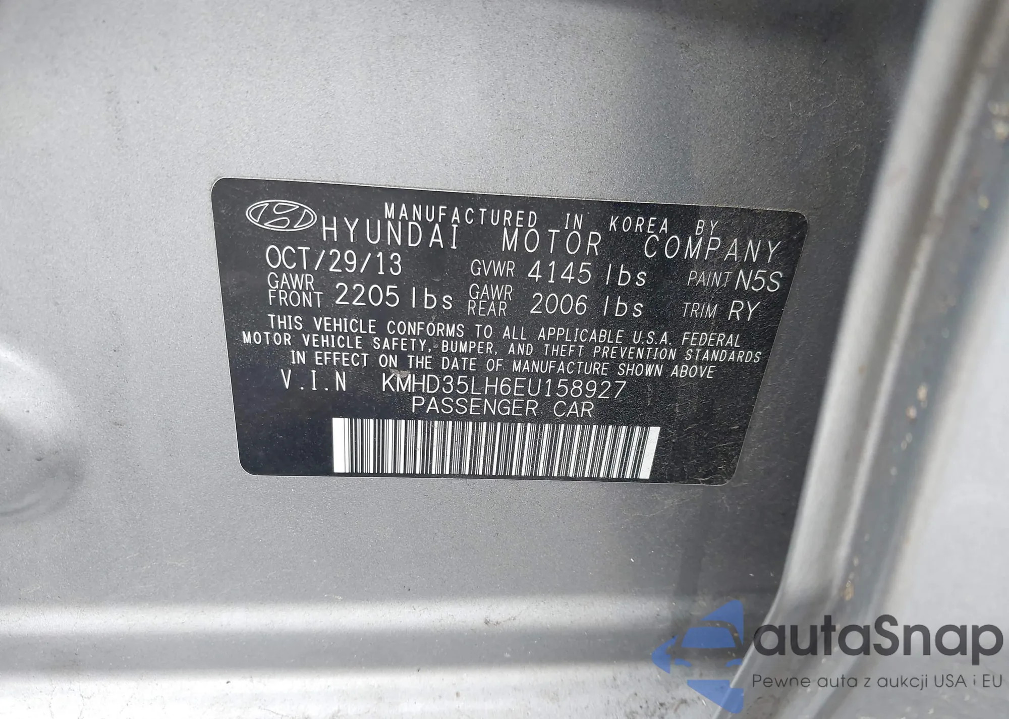 • VIN KMHD35LH6EU158927