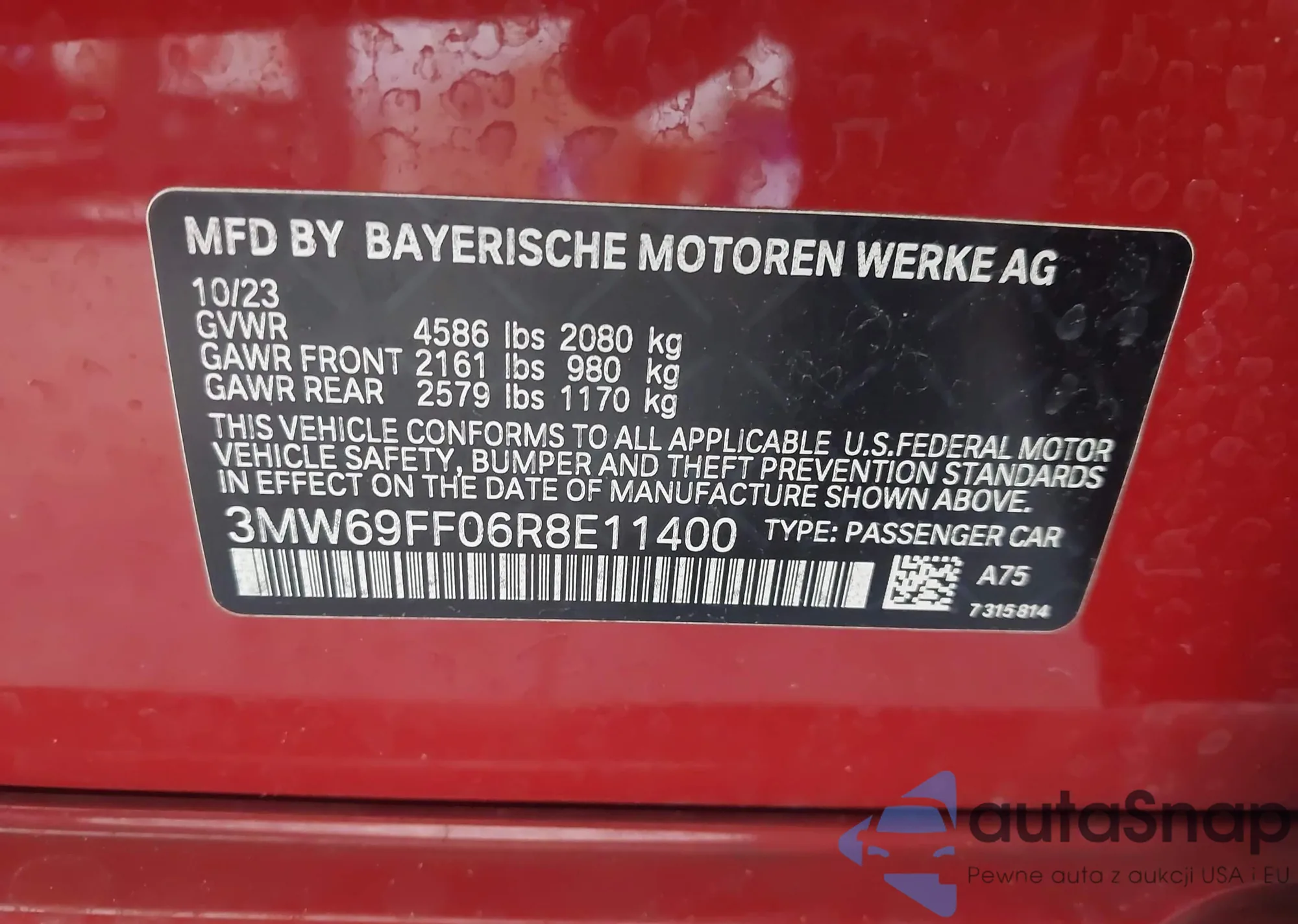 • VIN 3MW69FF06R8E11400