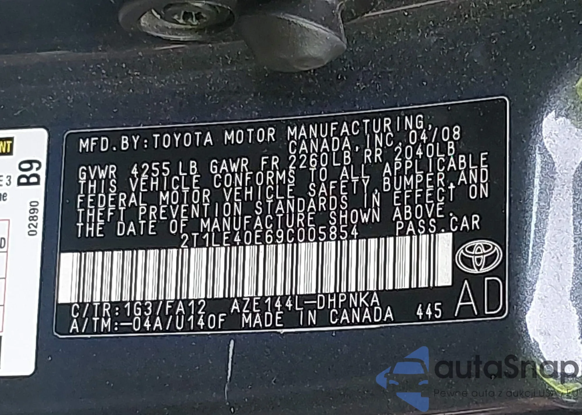 • VIN 2T1LE40E69C005854