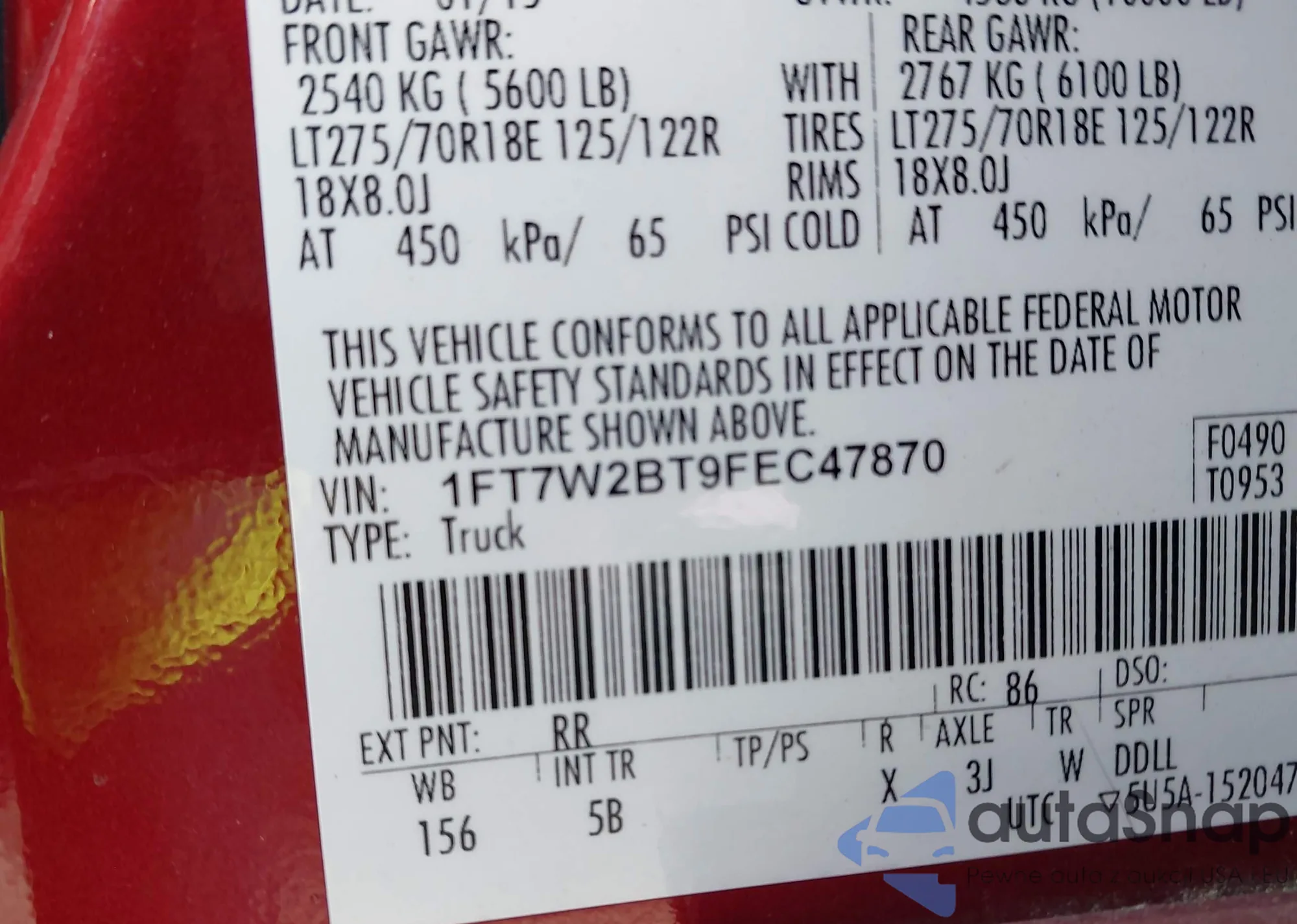 • VIN 1FT7W2BT9FEC47870