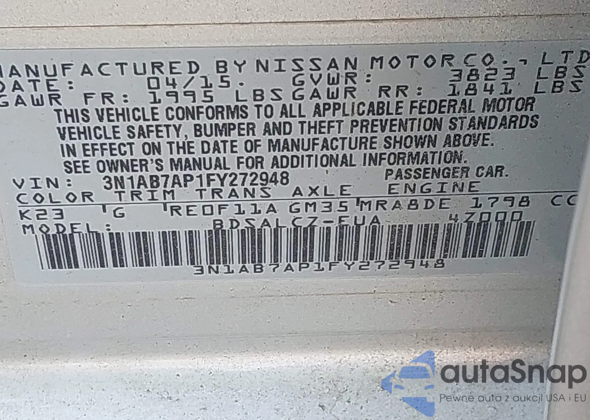• VIN 3N1AB7AP1FY272948
