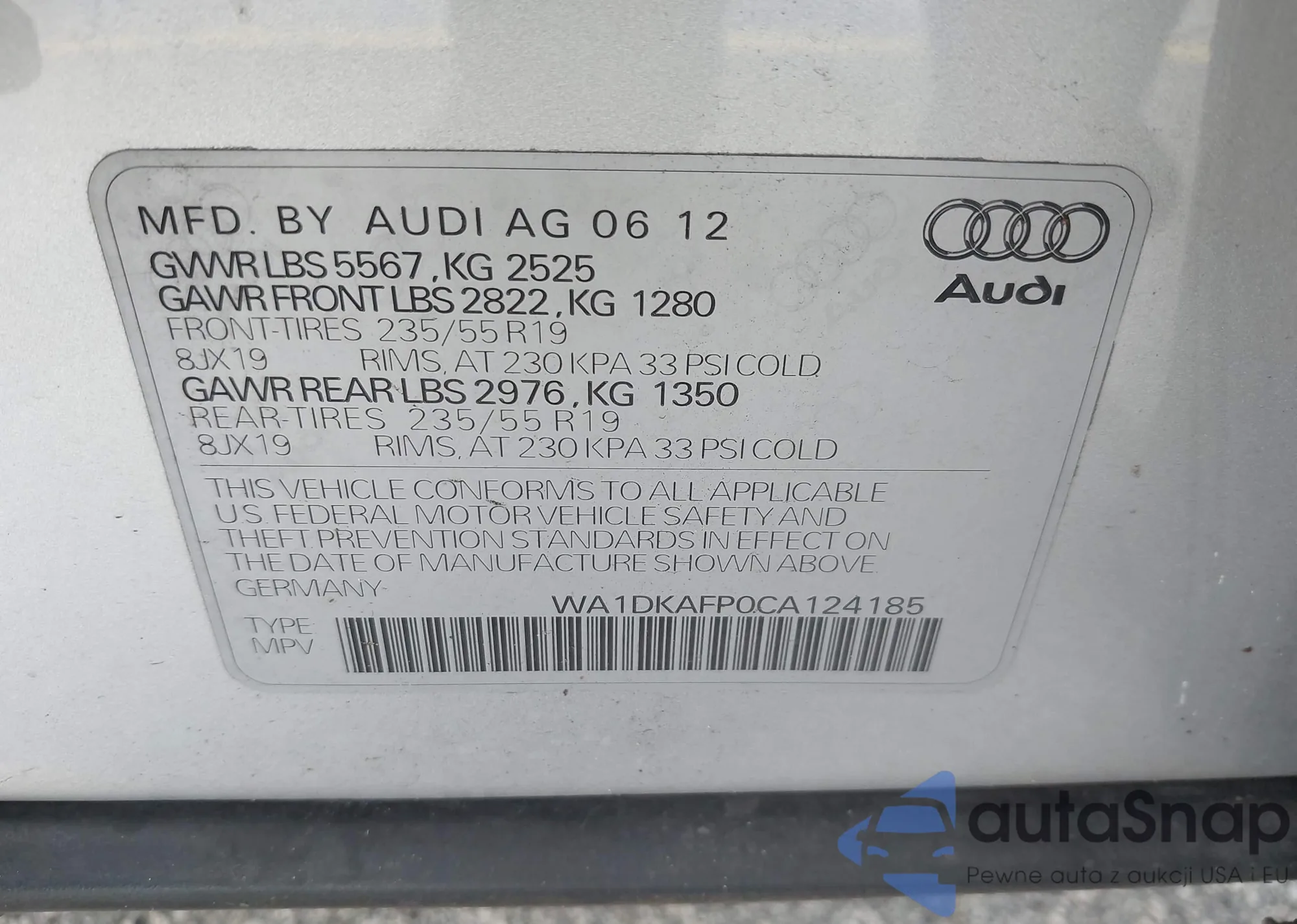 LOT: 43131674 VIN: WA1DKAFP0CA124185