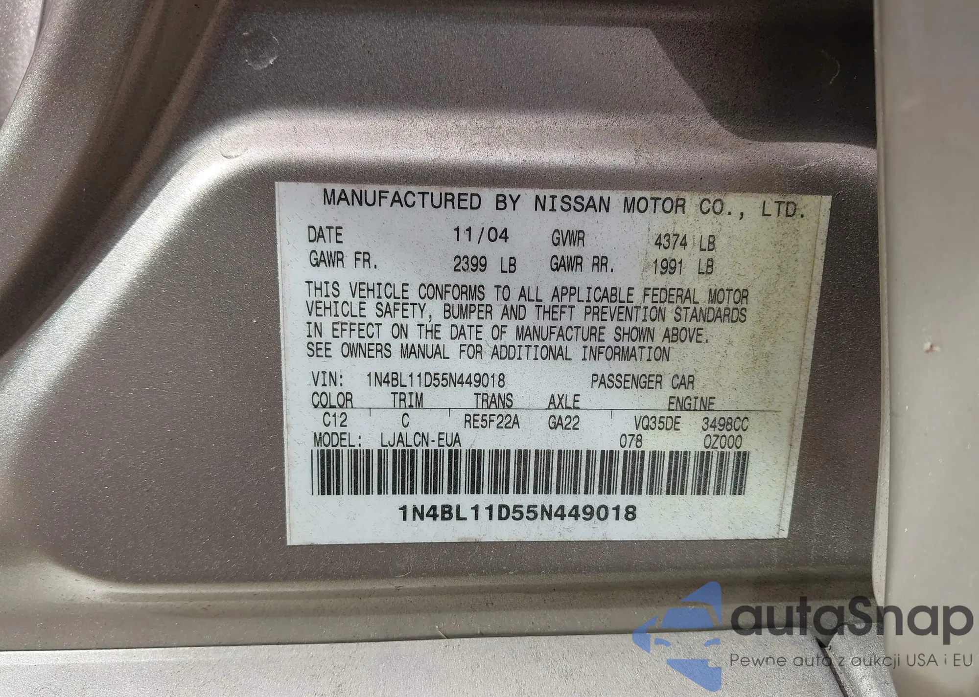• VIN 1N4BL11D55N449018