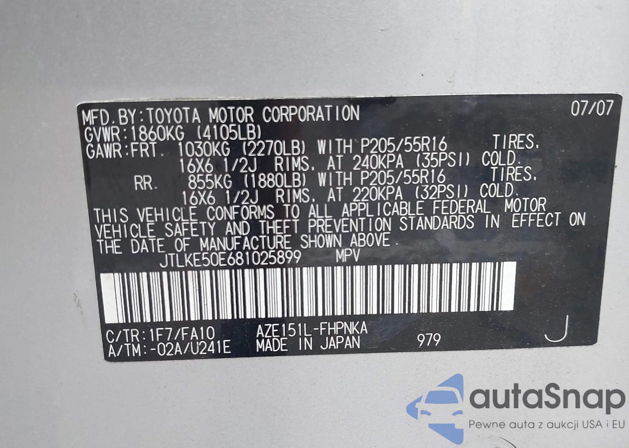 LOT: 43209386 VIN: JTEBU14R770126695