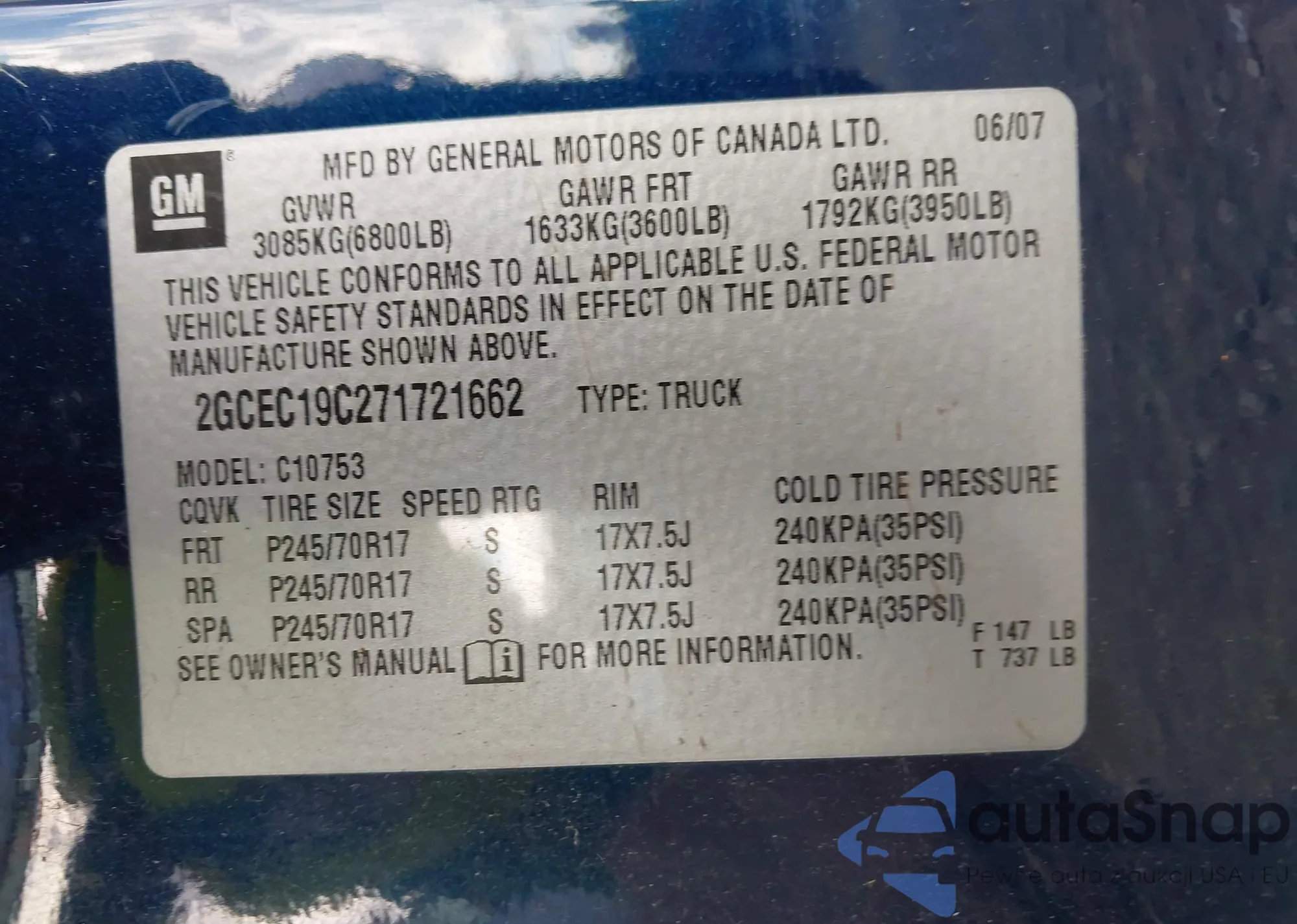 • VIN 2GCEC19C271721662