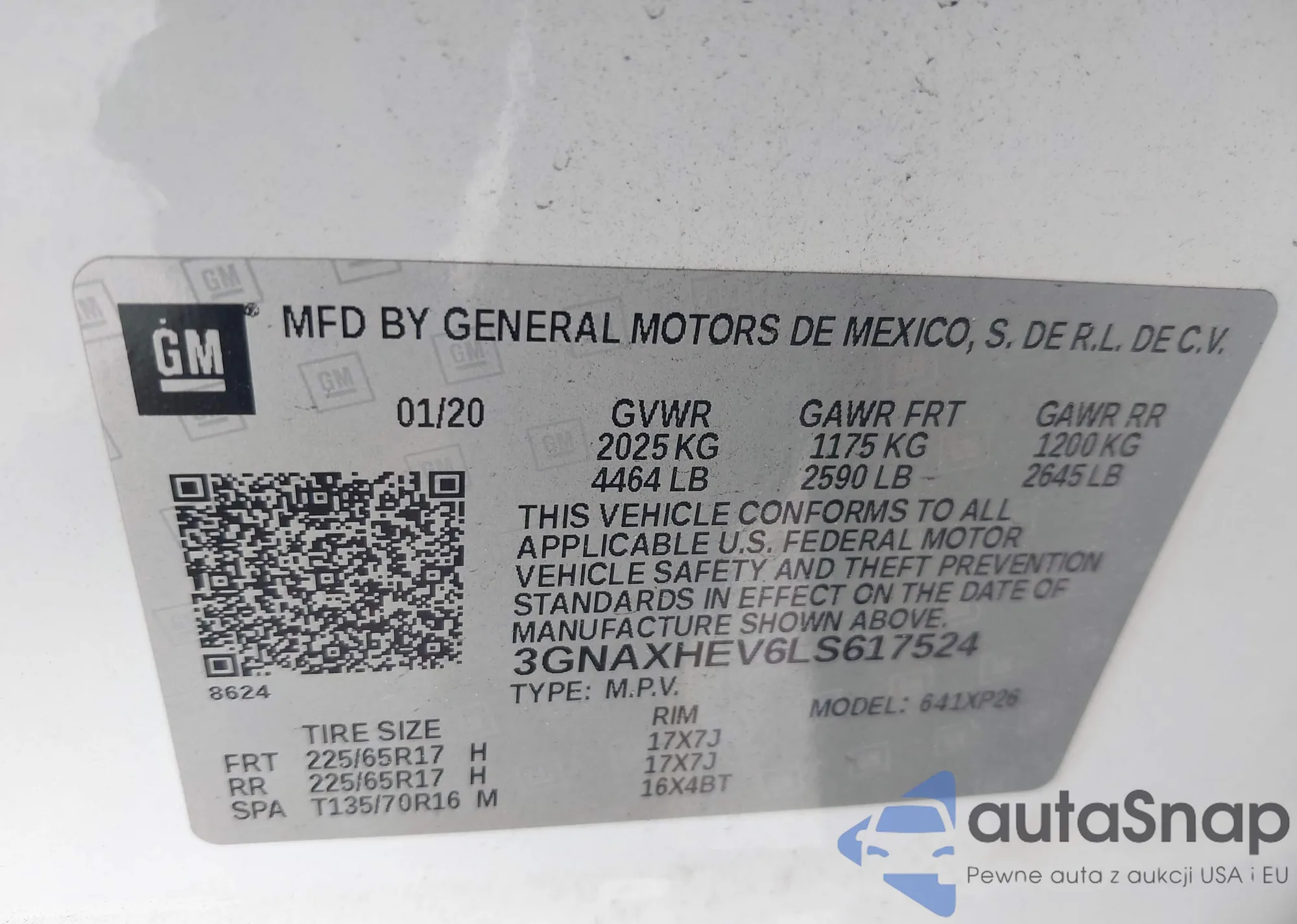 LOT: 40628874 VIN: 3GNAXHEV6LS617524
