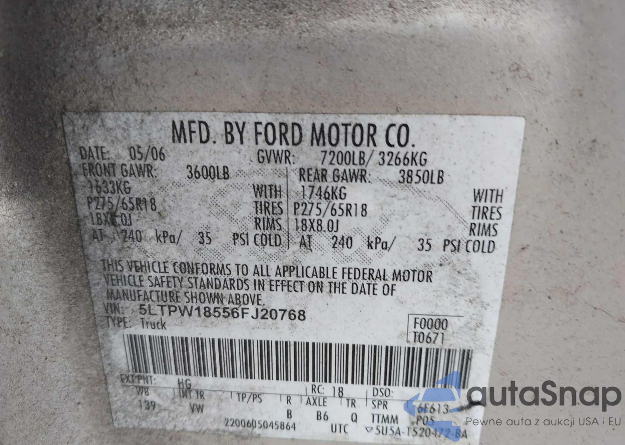 LOT: 43043546 VIN: 5LTPW18556FJ20768