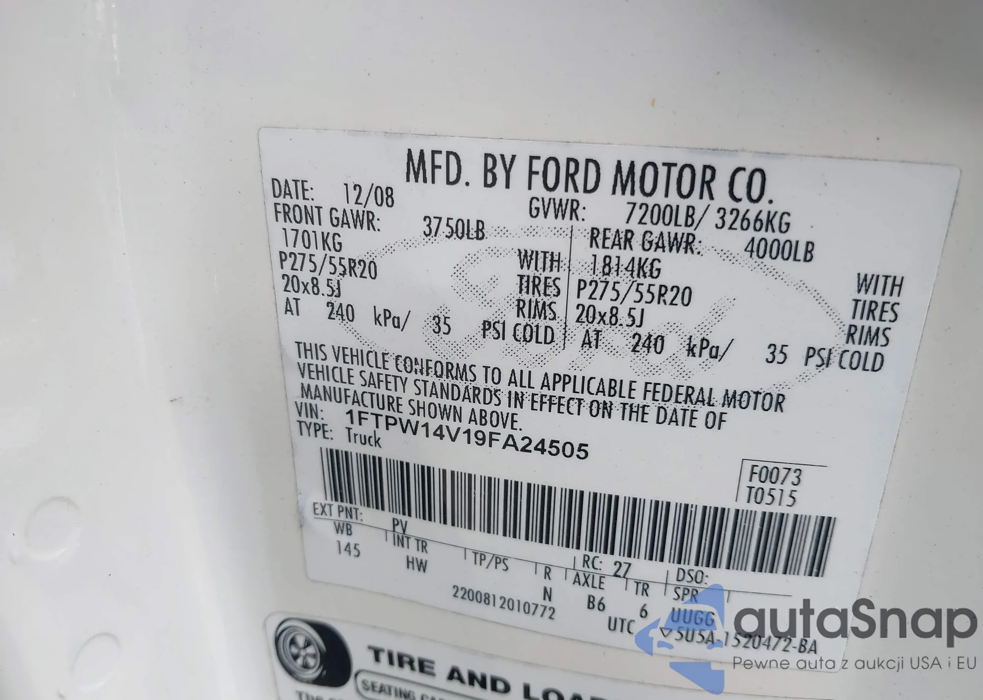 • VIN 1FTPW14V19FA24505