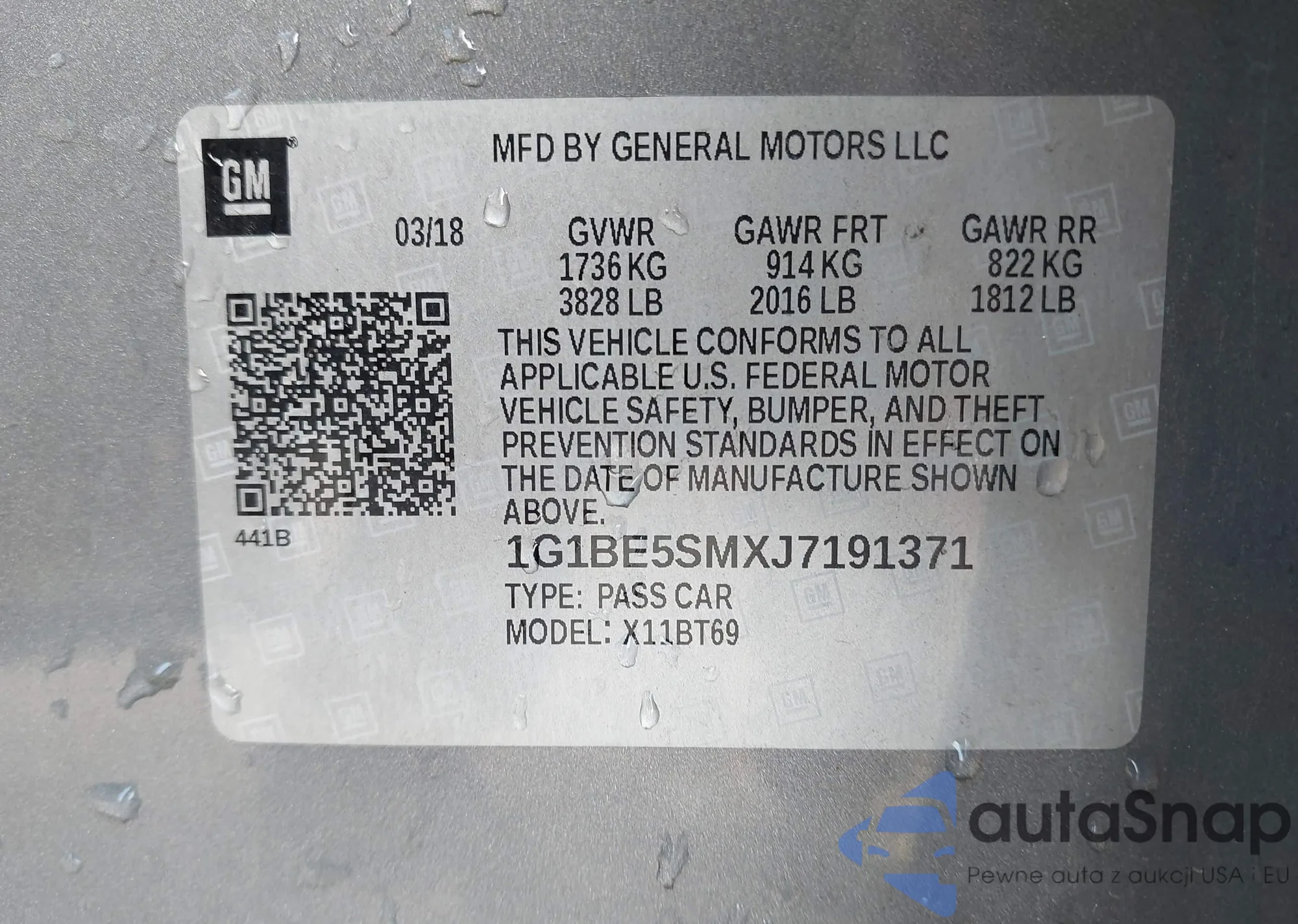• VIN 1G1BE5SMXJ7191371