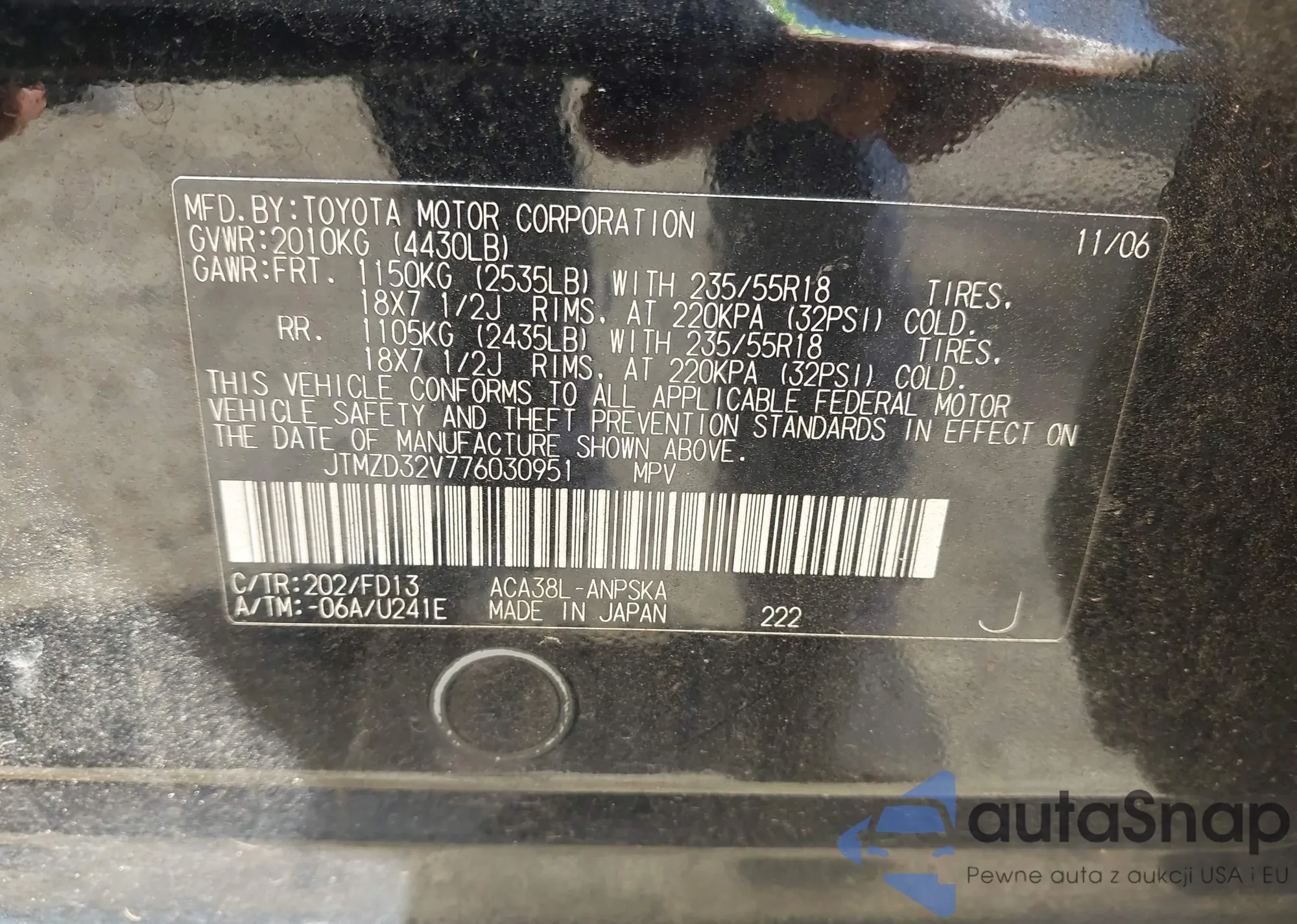 • VIN JTMZD32V776030951