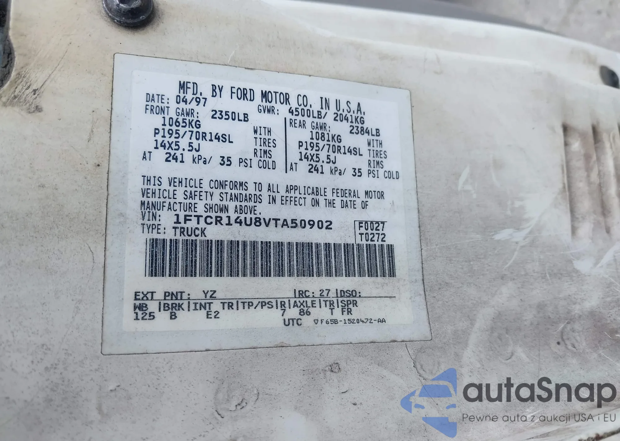 • VIN 1FTYR2XM7GKA95765