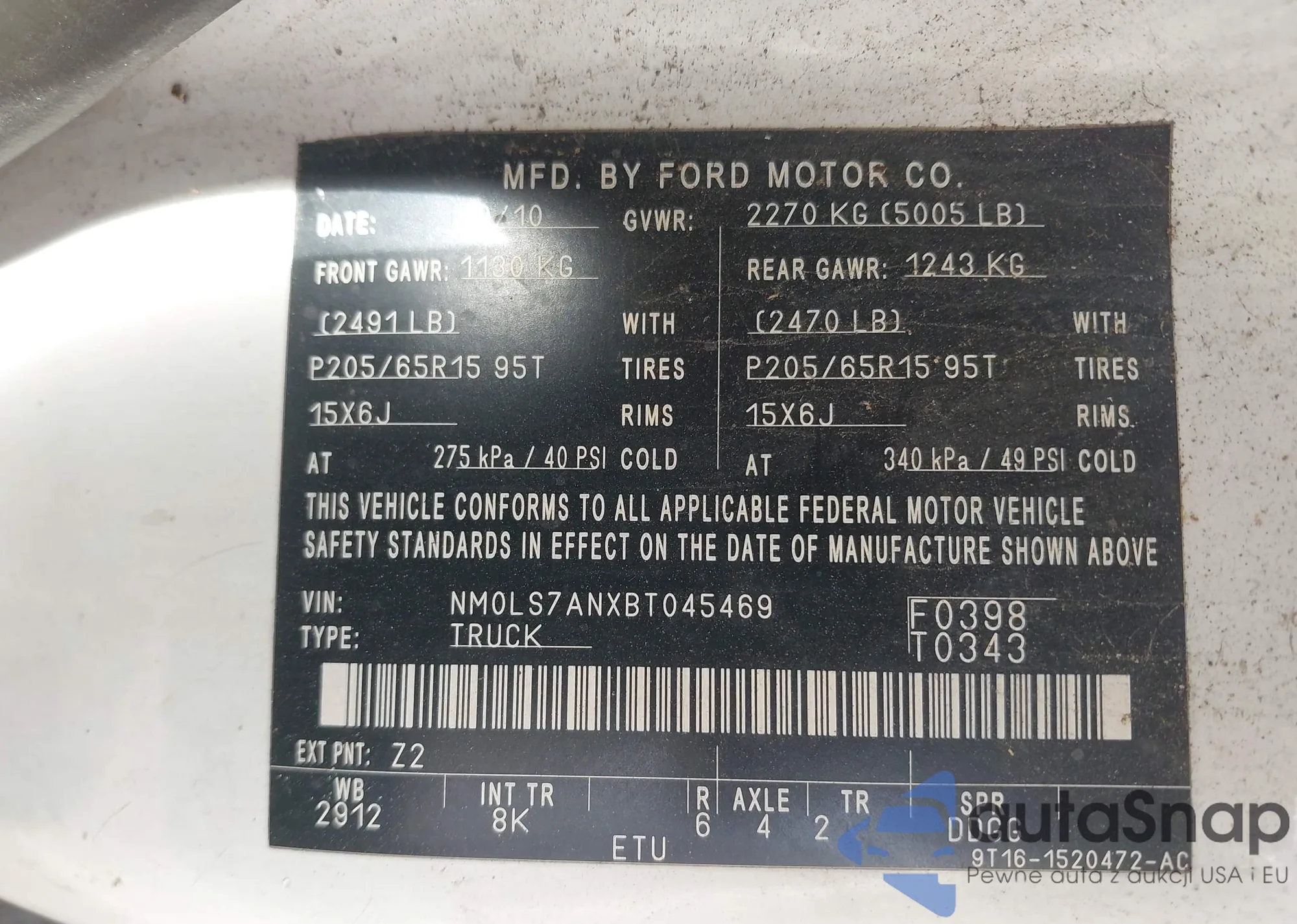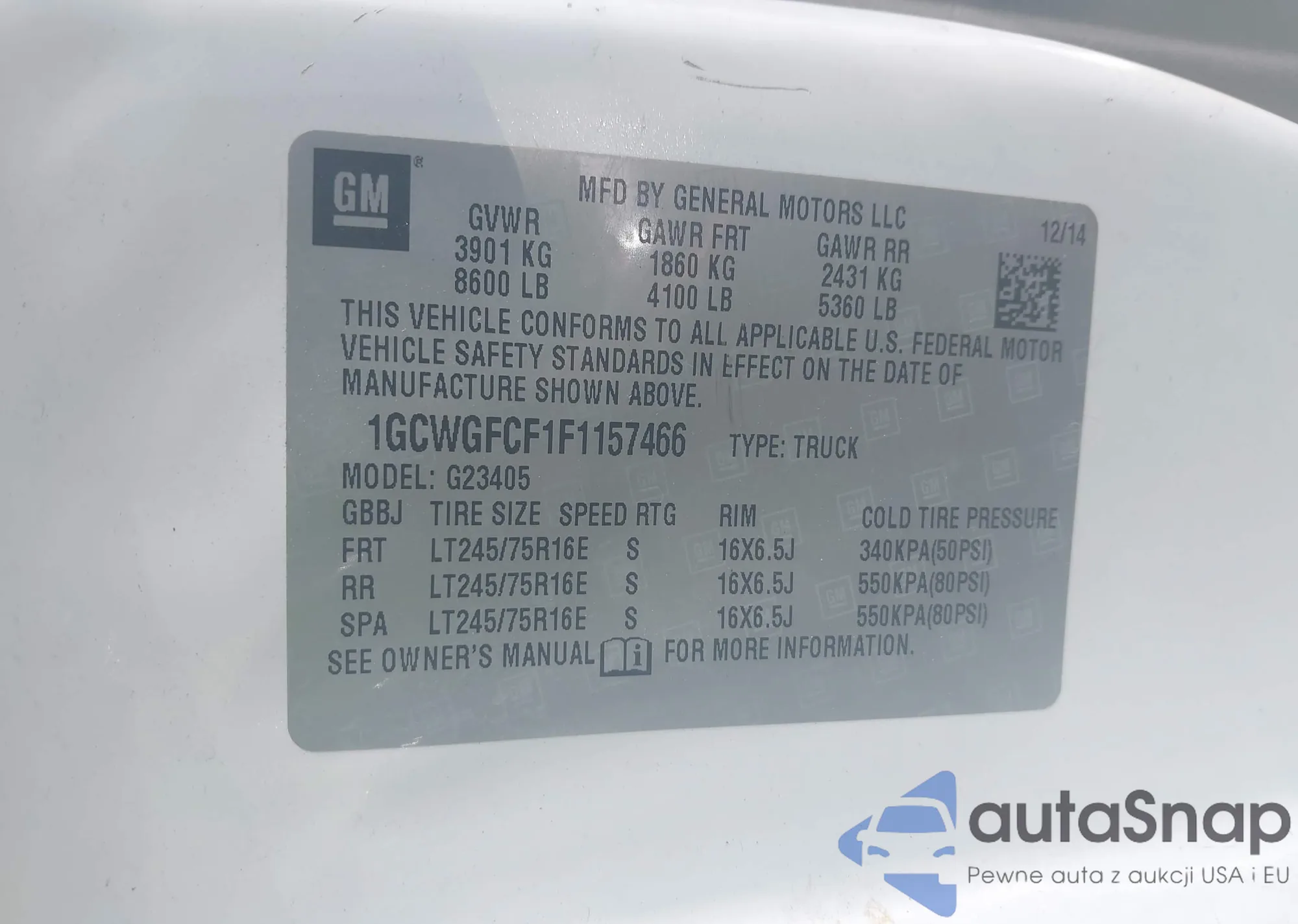 LOT: 40628697 VIN: 1GCWGFCF1F1157466