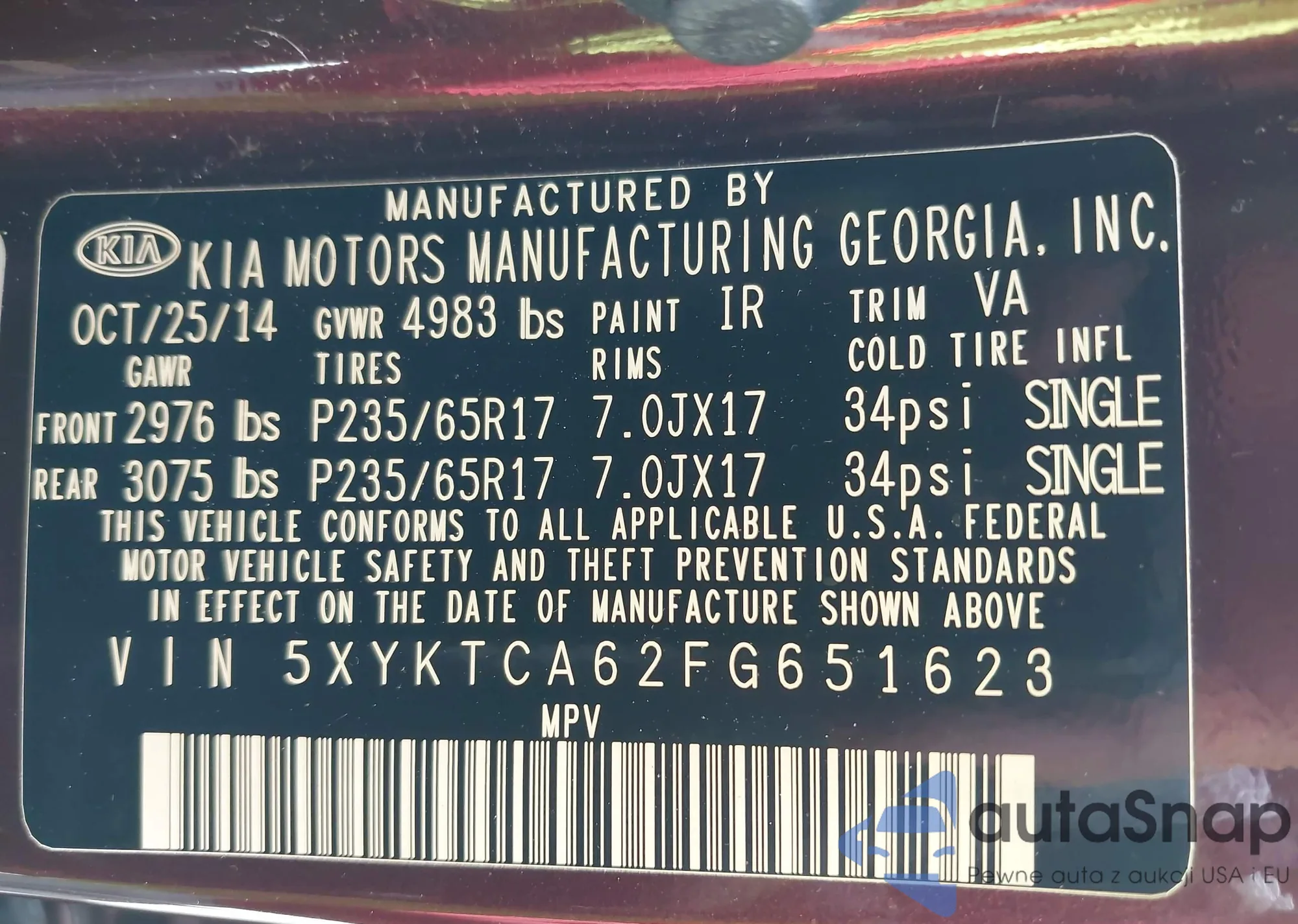 • VIN 5XYKTCA62FG651623