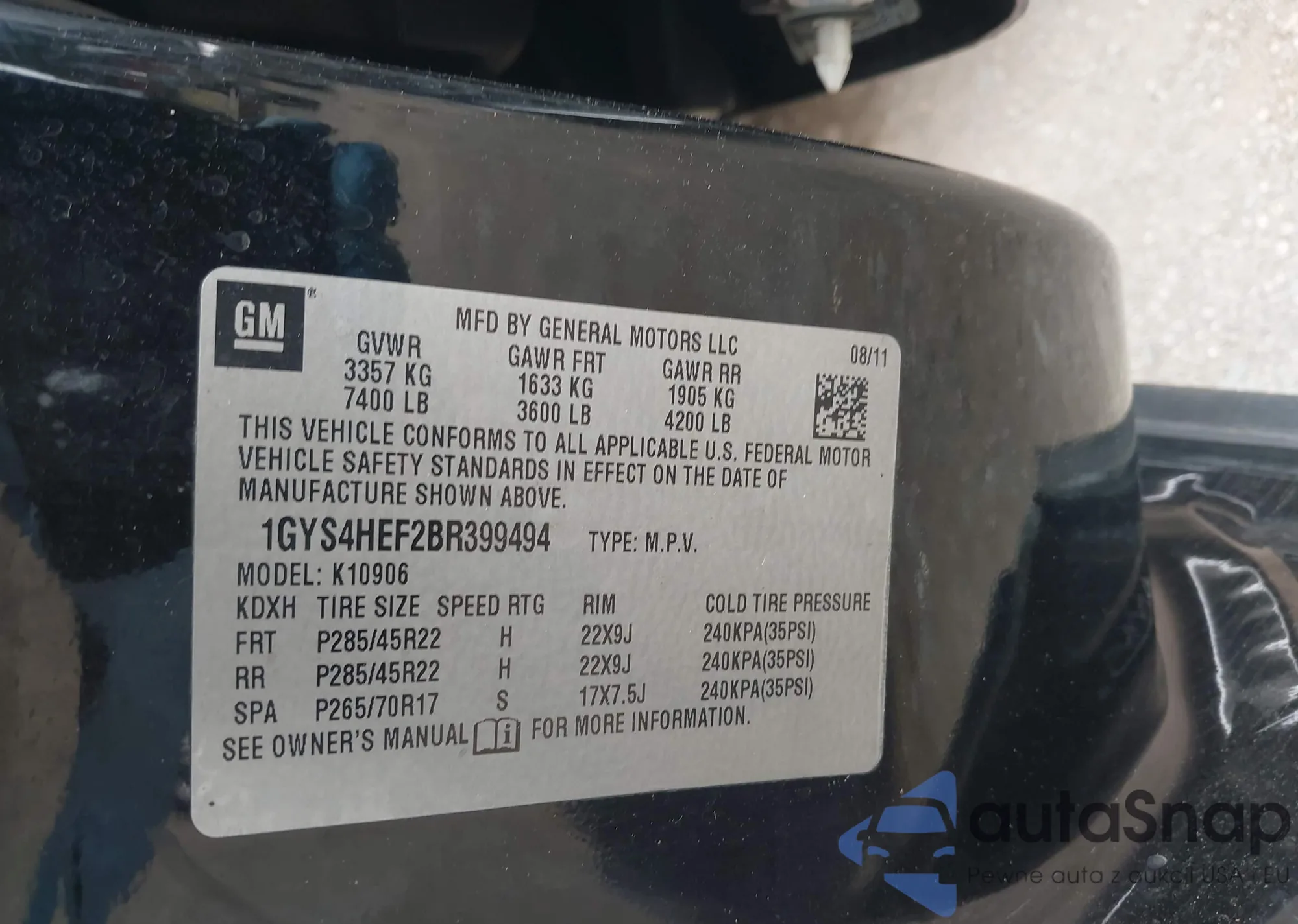 • VIN 1GYS4HEF2BR399494