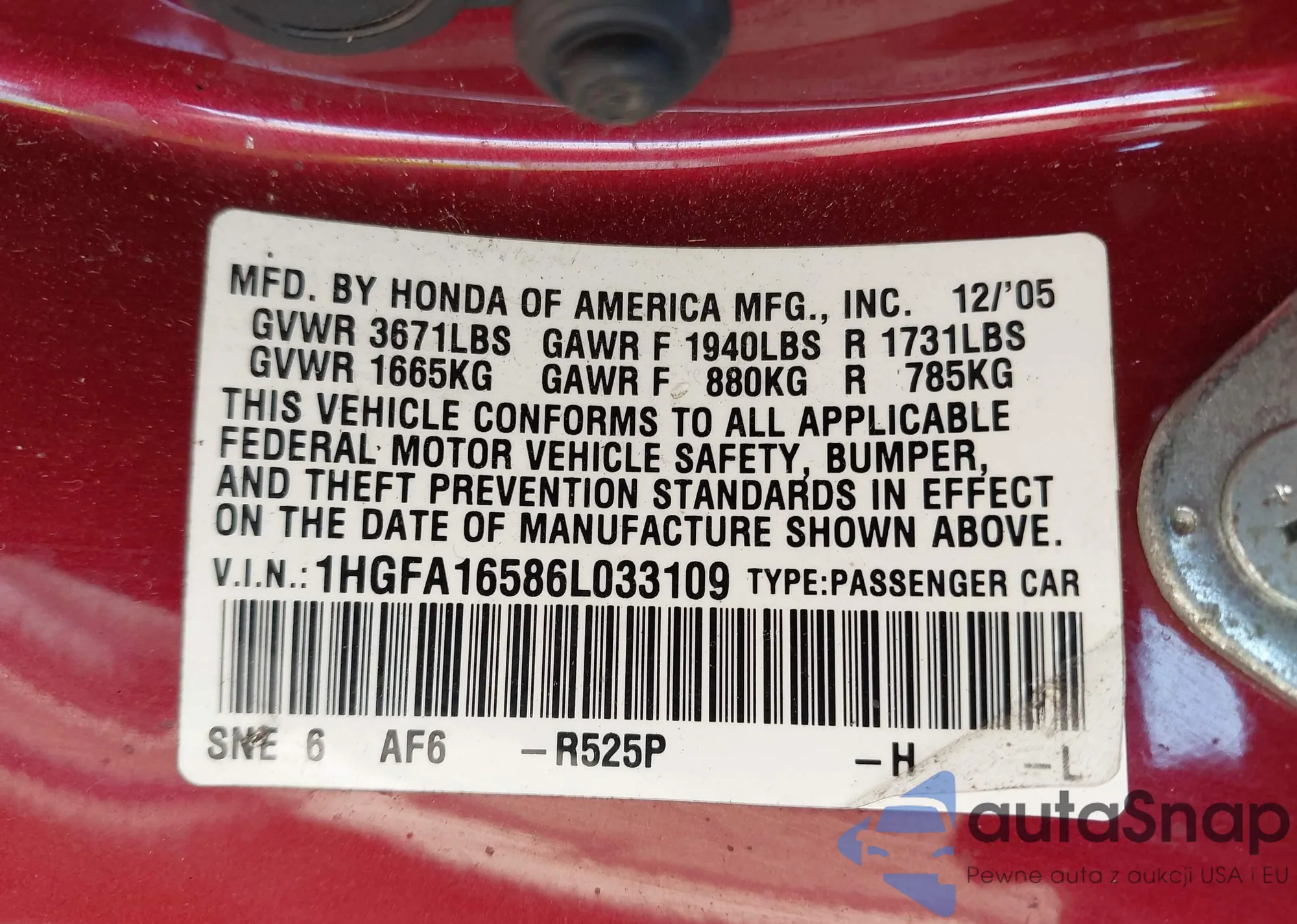 • VIN 1N4BL4BV7PN349367