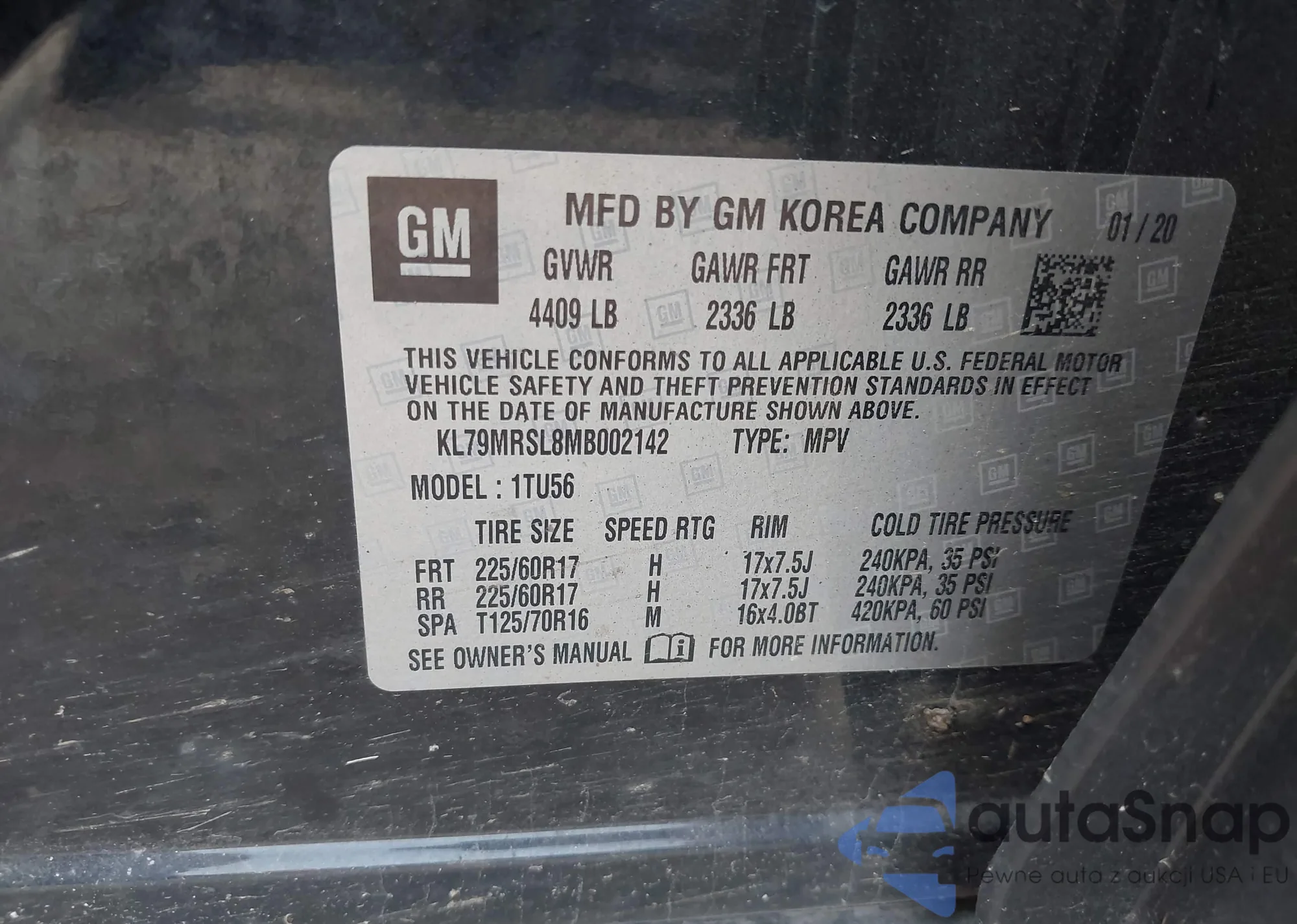 • VIN KL79MRSL8MB002142