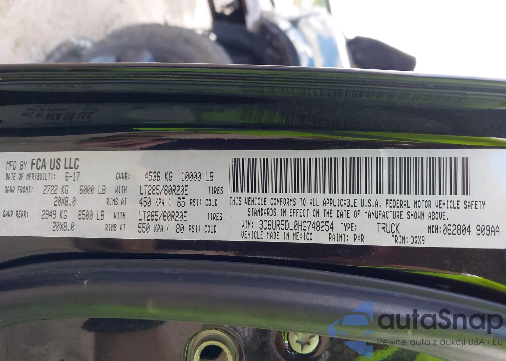 • VIN 3C6UR5DL0HG748254