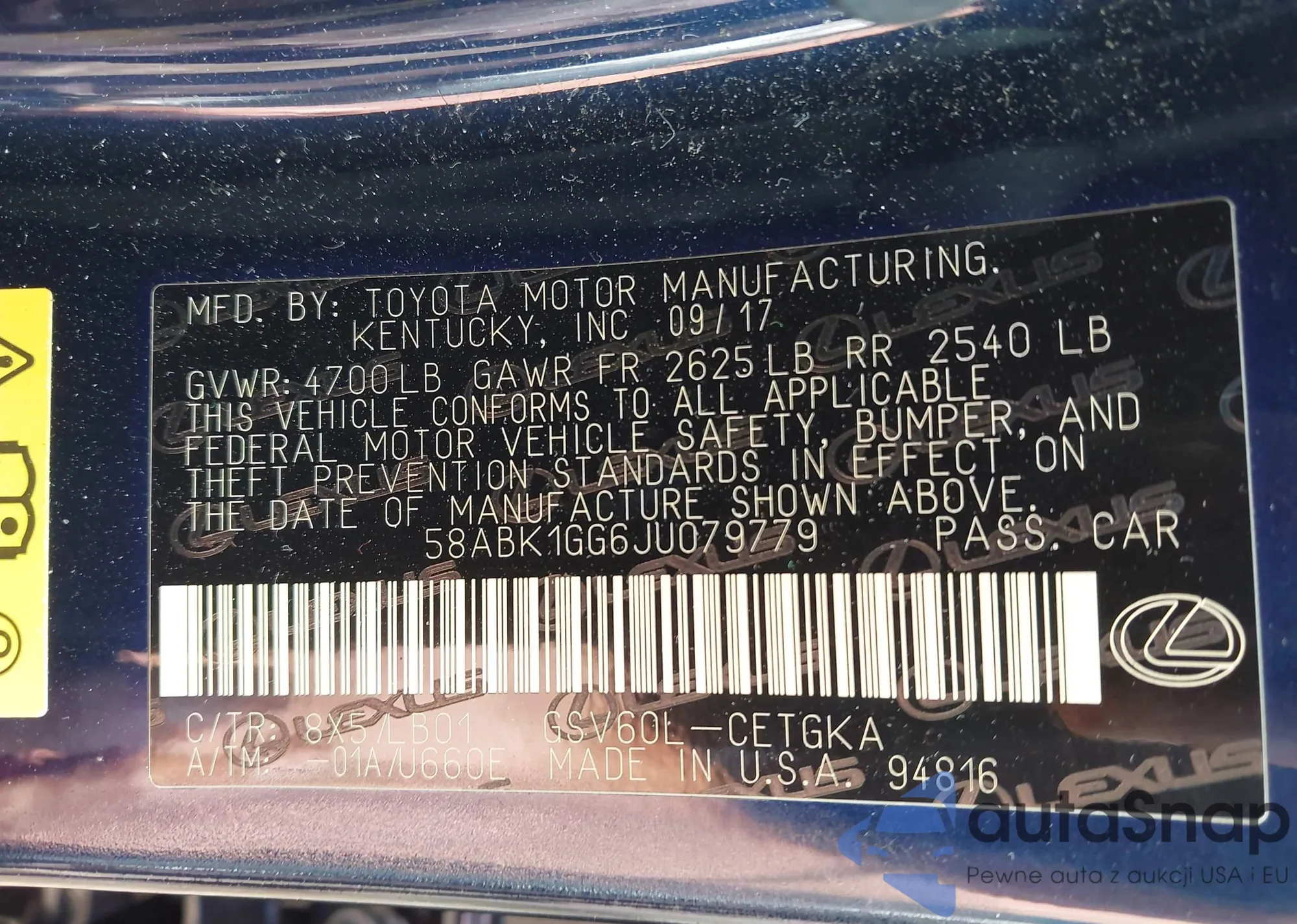 • VIN 58ABK1GG6JU079779