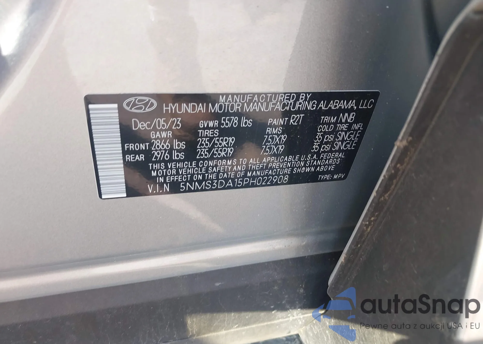 • VIN 5NMS3DA15PH022908