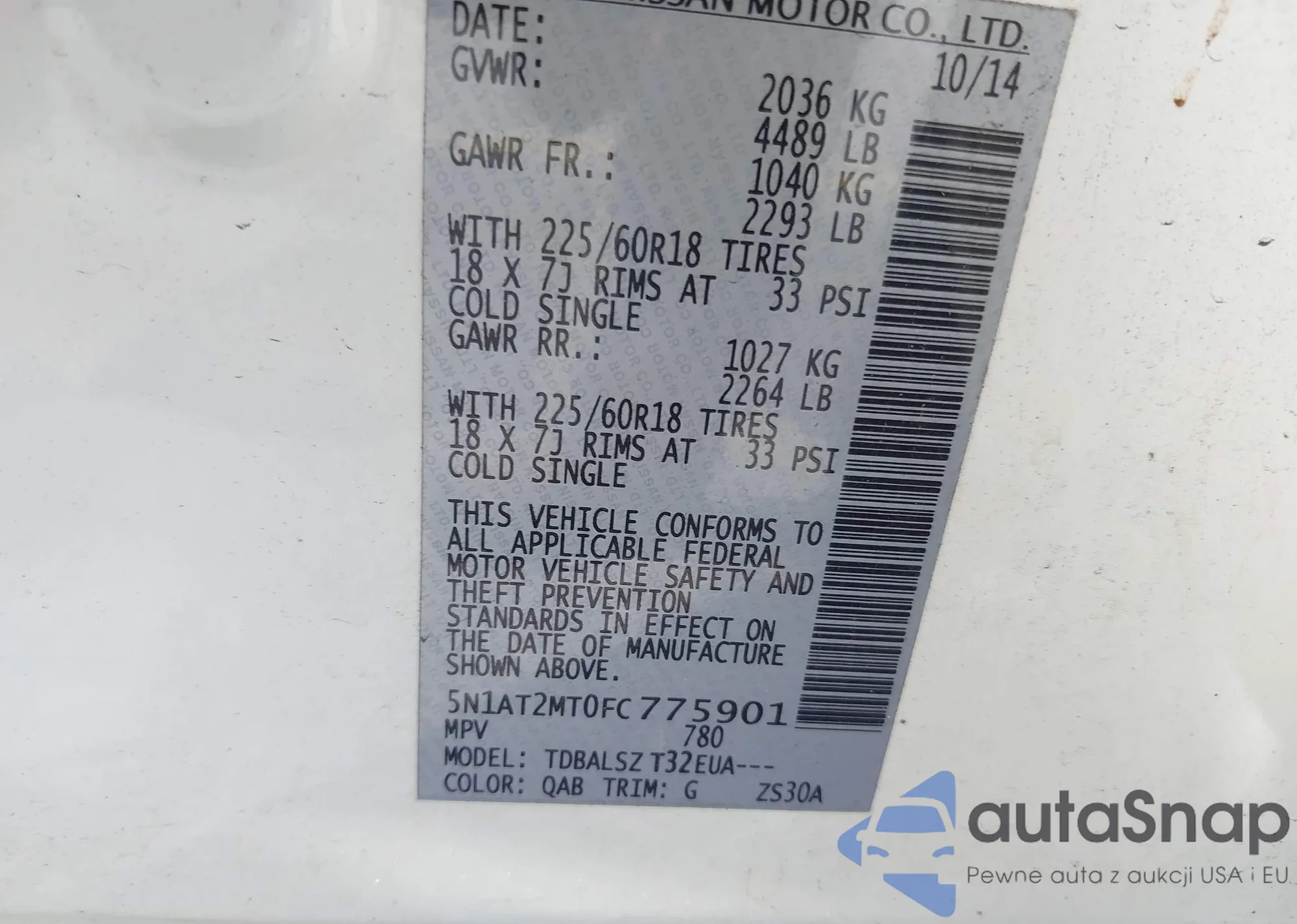 LOT: 42735030 VIN: 5N1AT2MT0FC775901