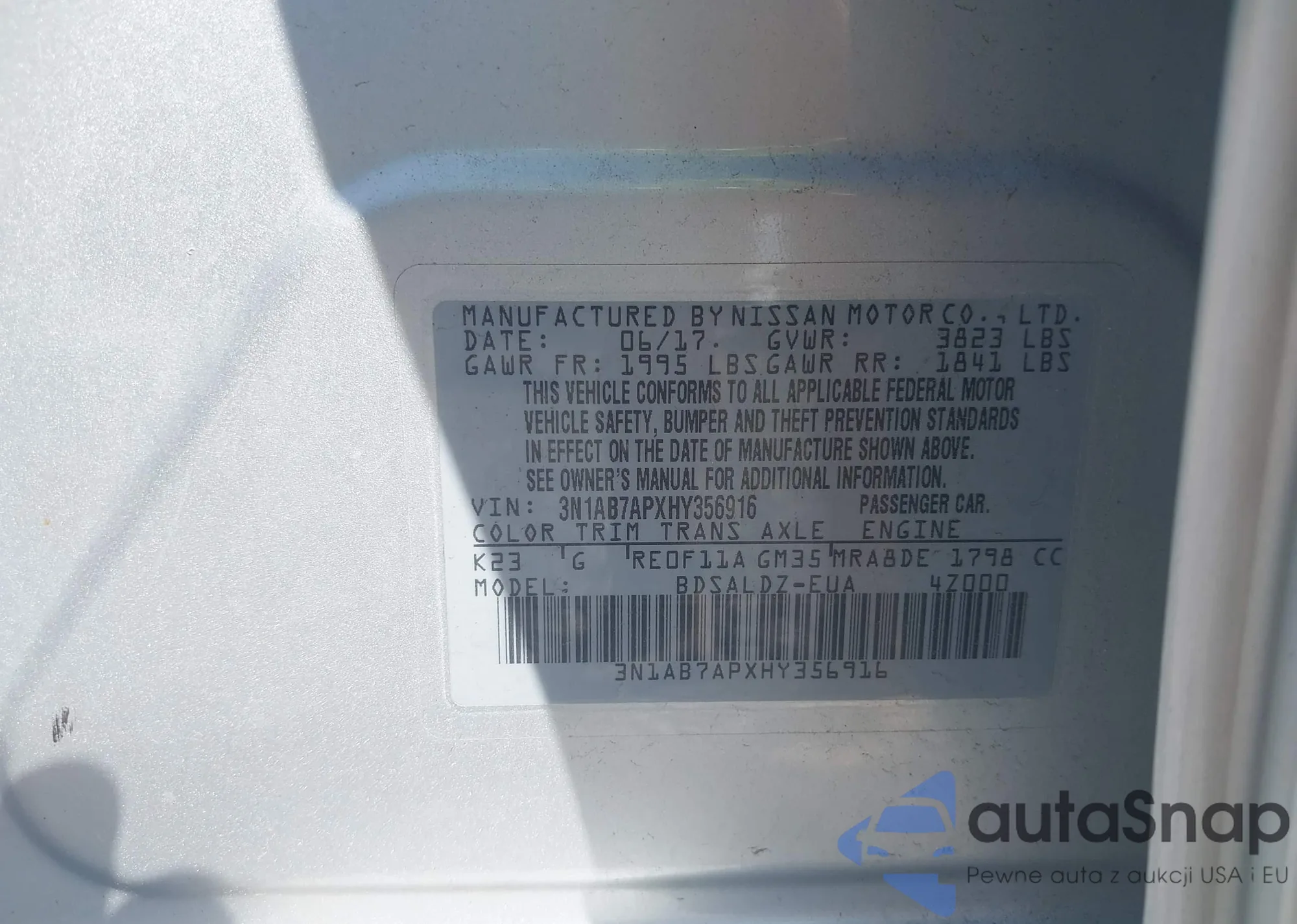 • VIN 3N1AB7APXHY356916