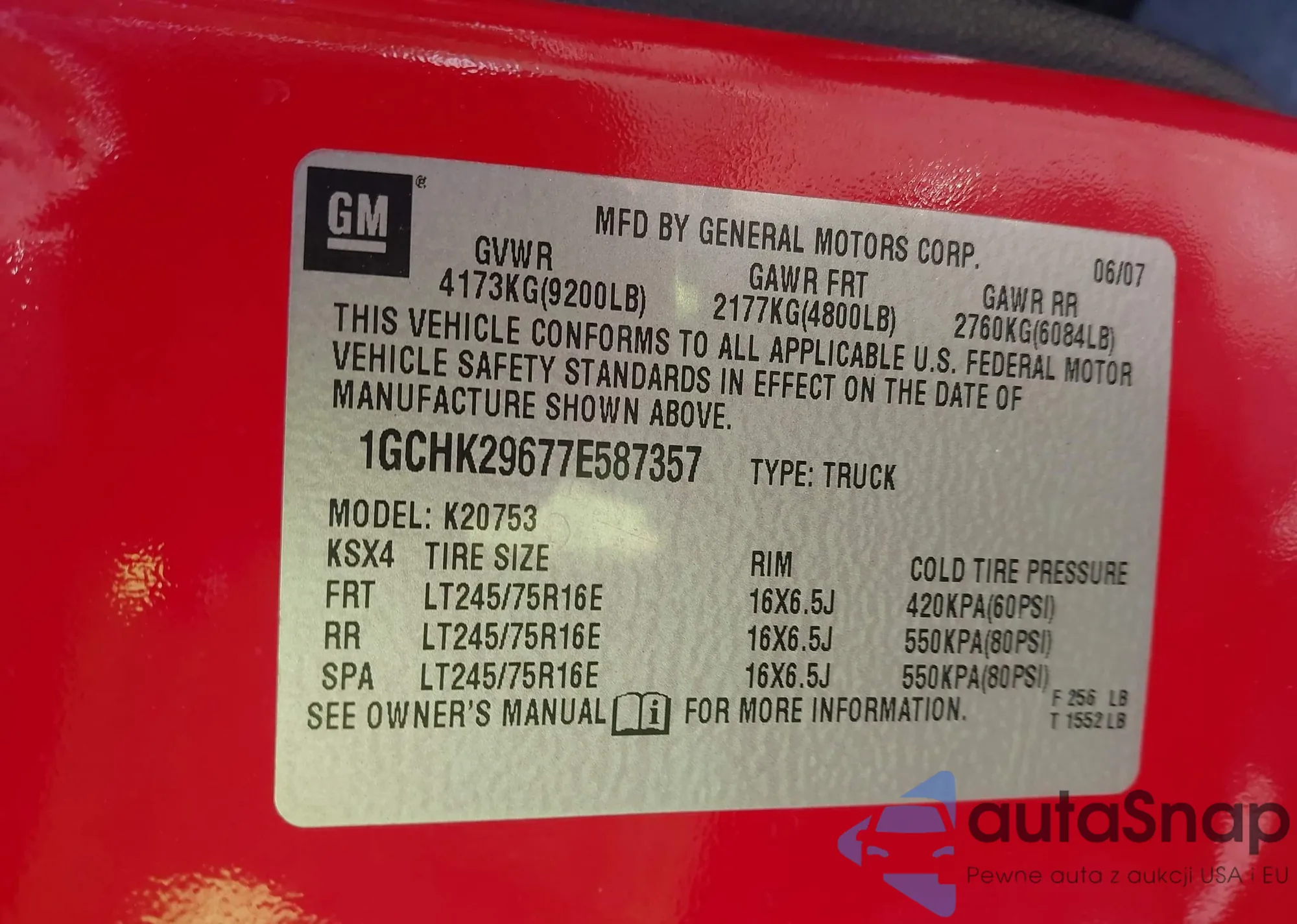 LOT: 43161108 VIN: 1GCHK29677E587357