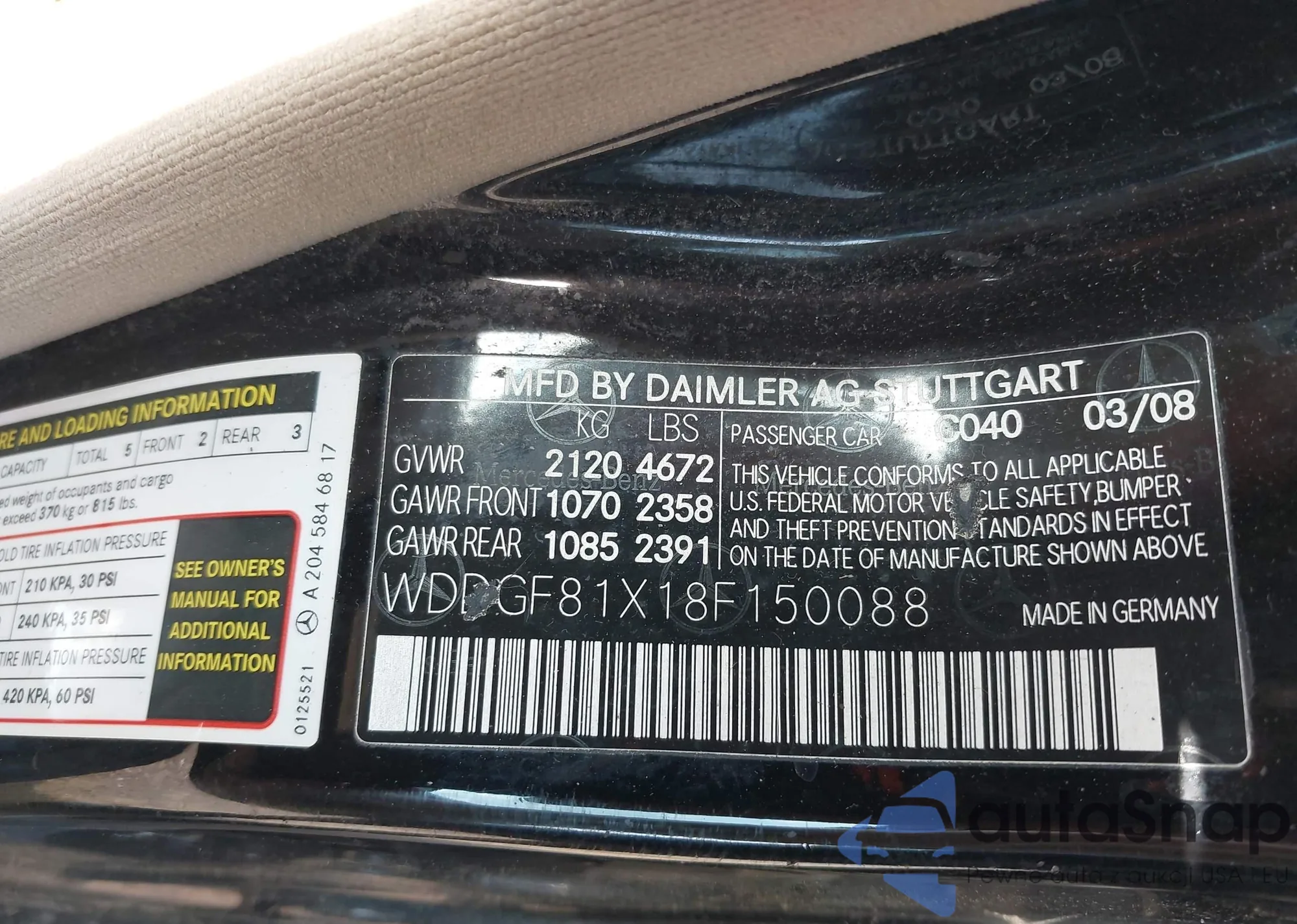 LOT: 43162141 VIN: WDDGF81X18F150088