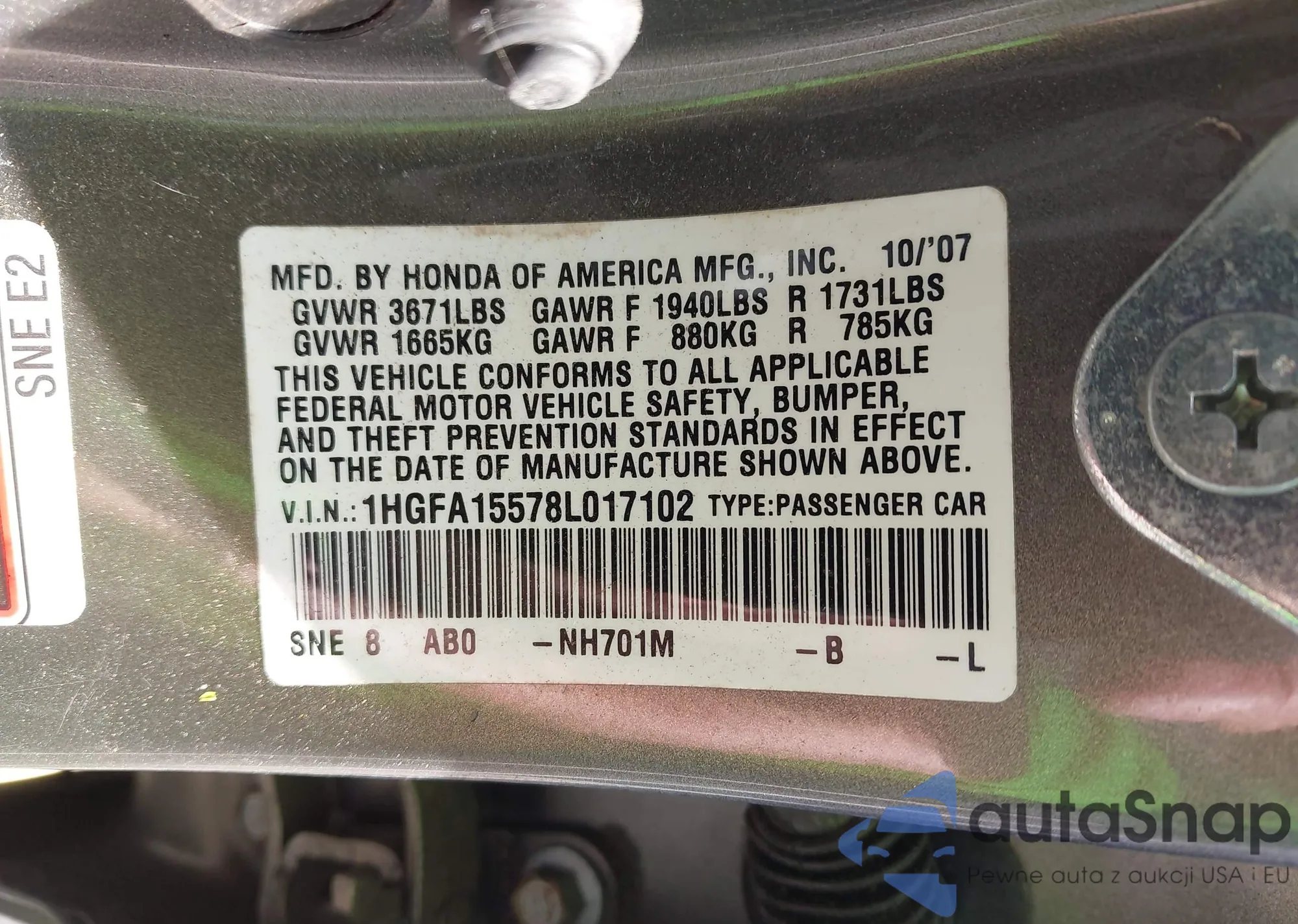 • VIN 1HGFA15578L017102