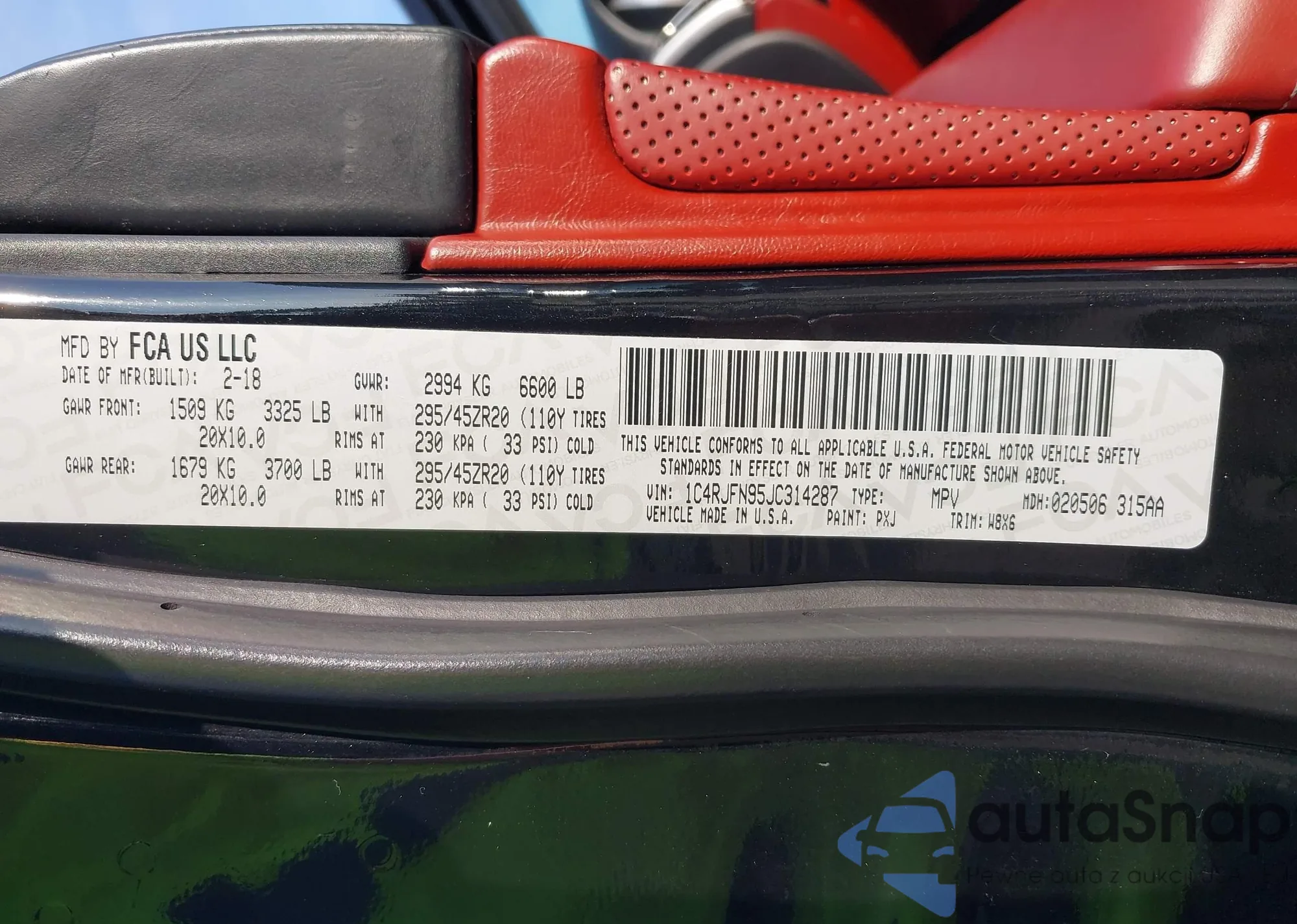 LOT: 43290738 VIN: 1C4RJFN95JC314287