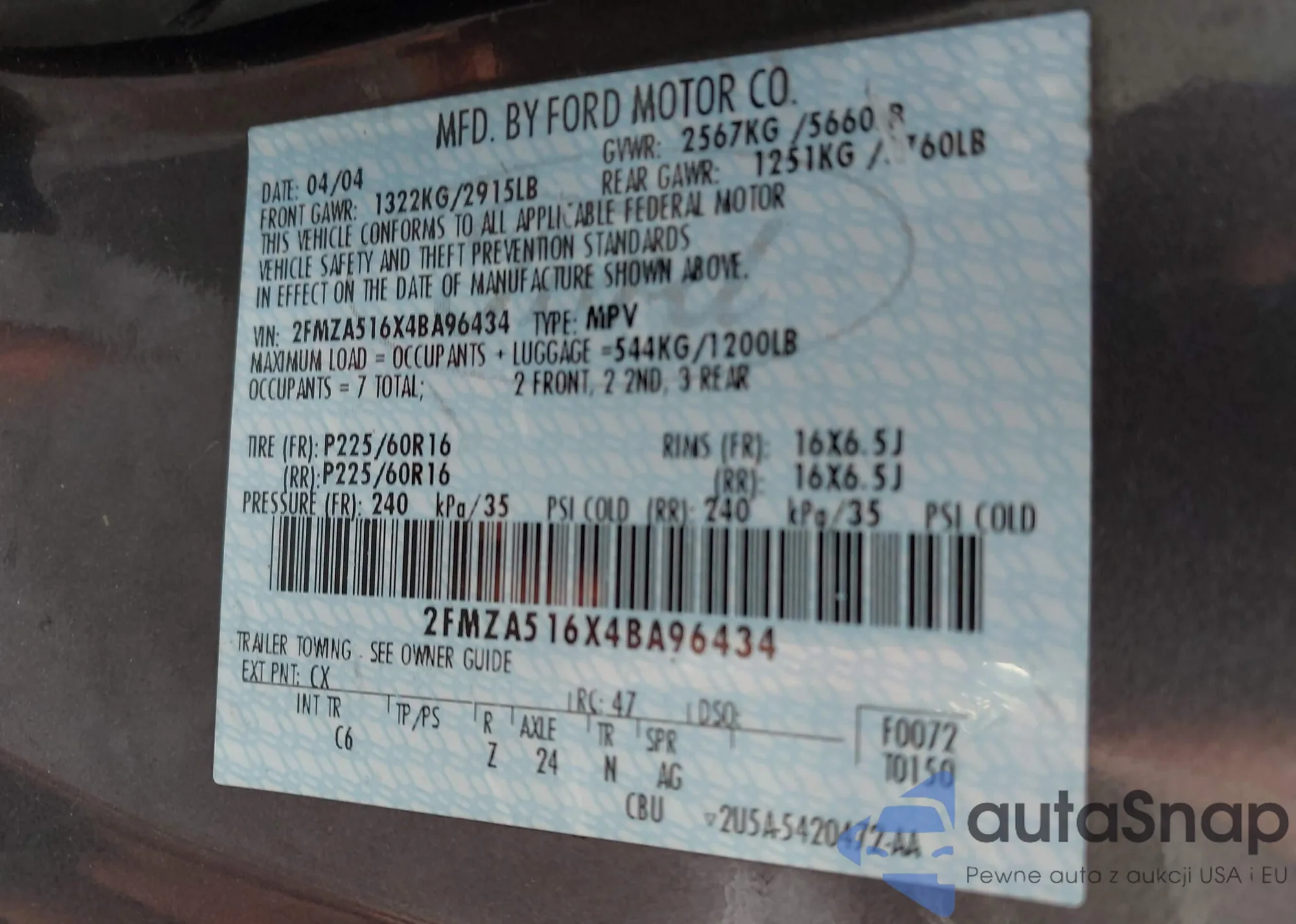 • VIN 2FMZA516X4BA96434
