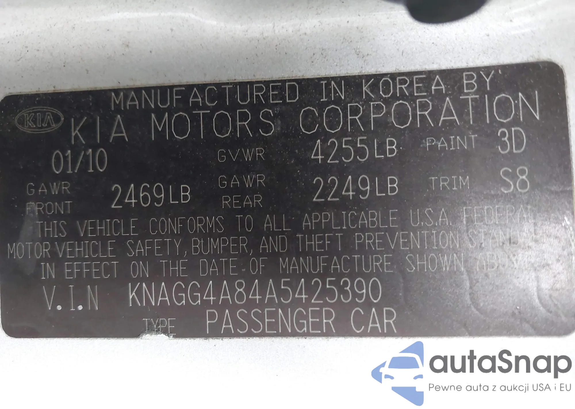 LOT: 43329110 VIN: KNAGG4A84A5425390