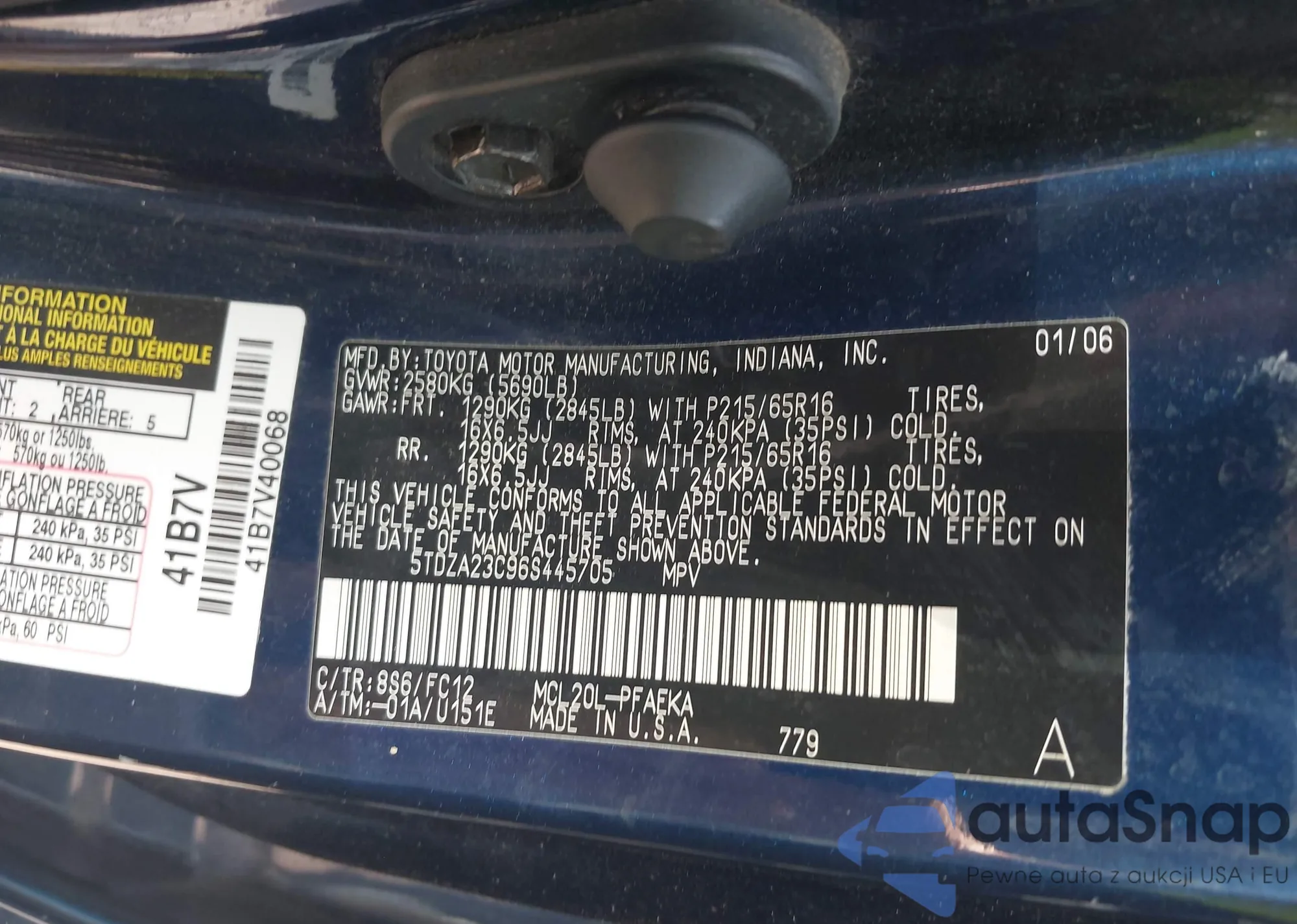 LOT: 42862695 VIN: 5TDZA23C86S445705