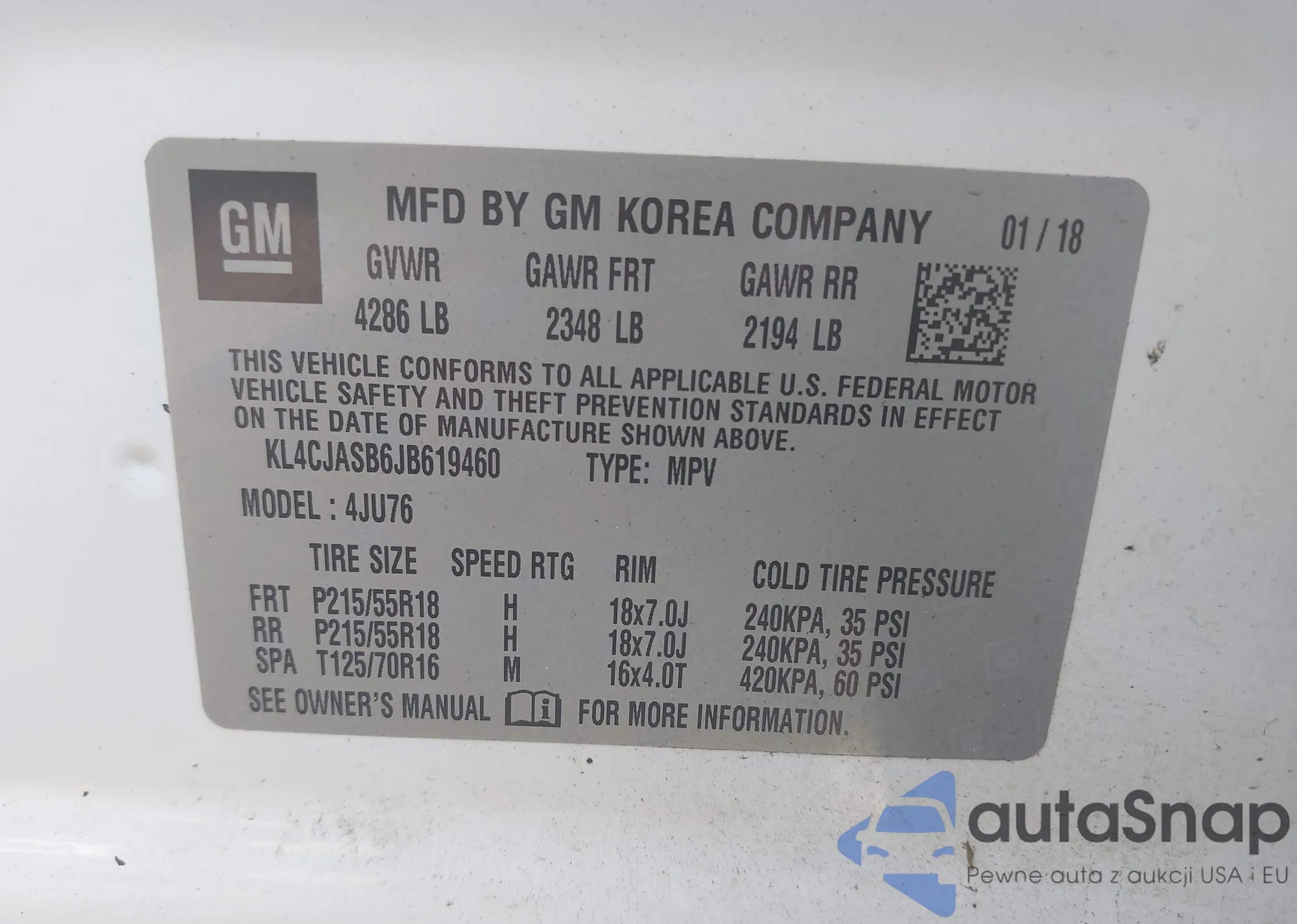 • VIN KL4CJASB6JB619460