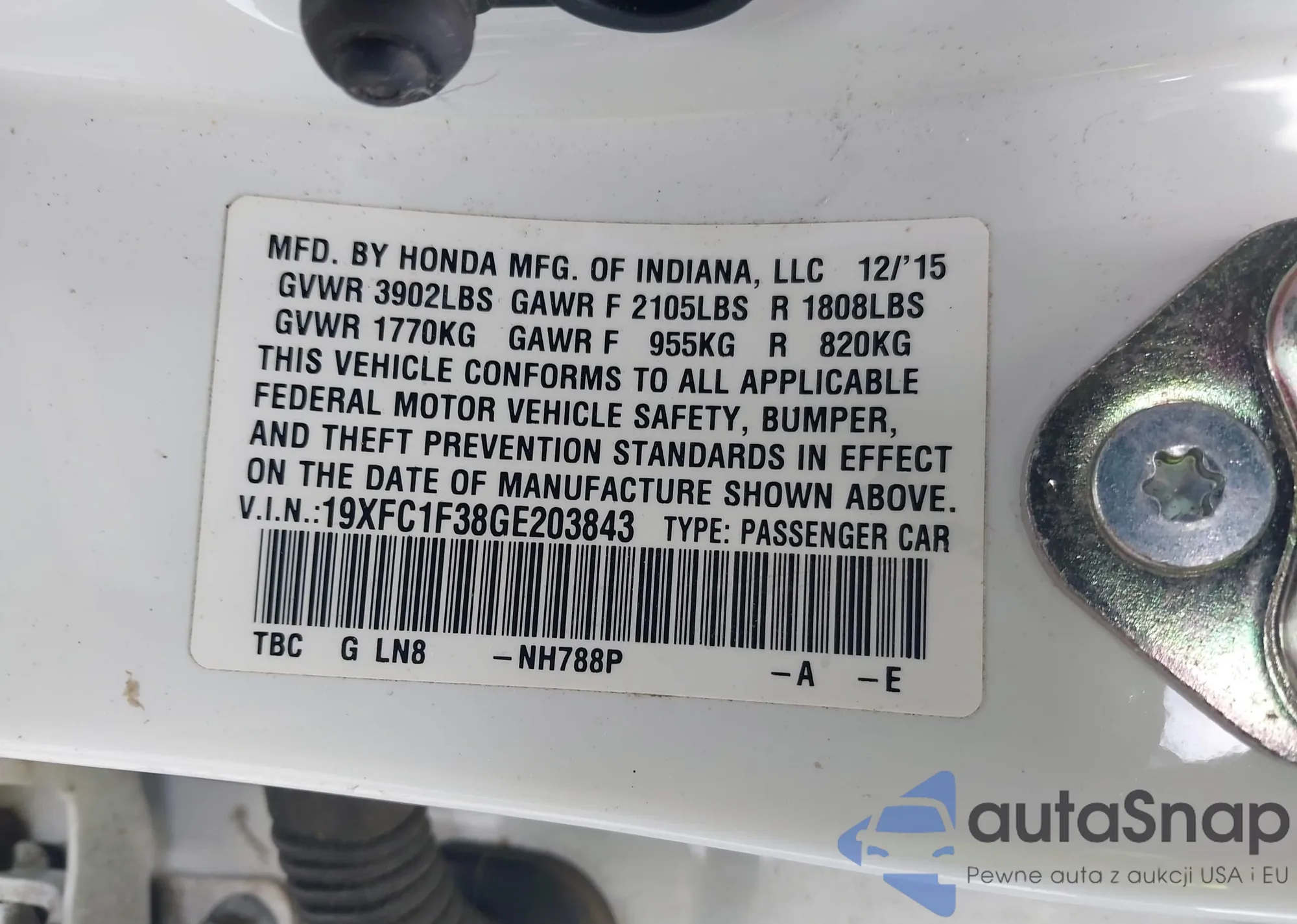 LOT: 42914163 VIN: JHMGE88289S049743