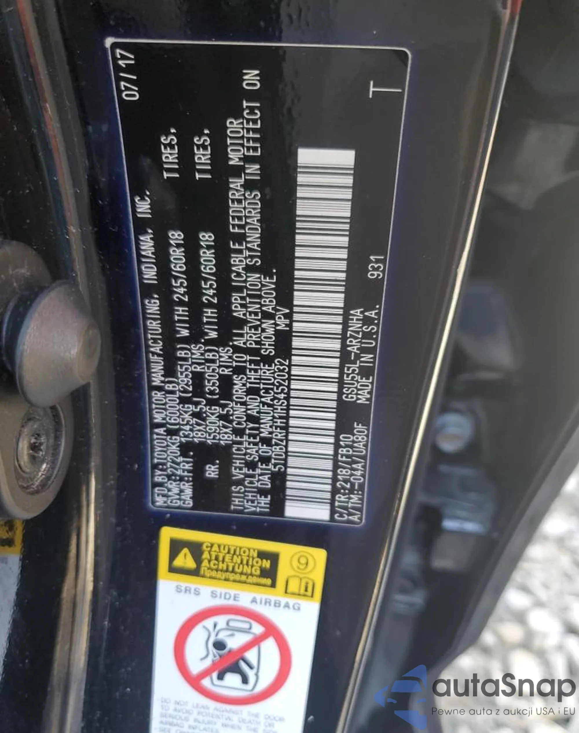 • VIN 5TDBZRFH1HS452032