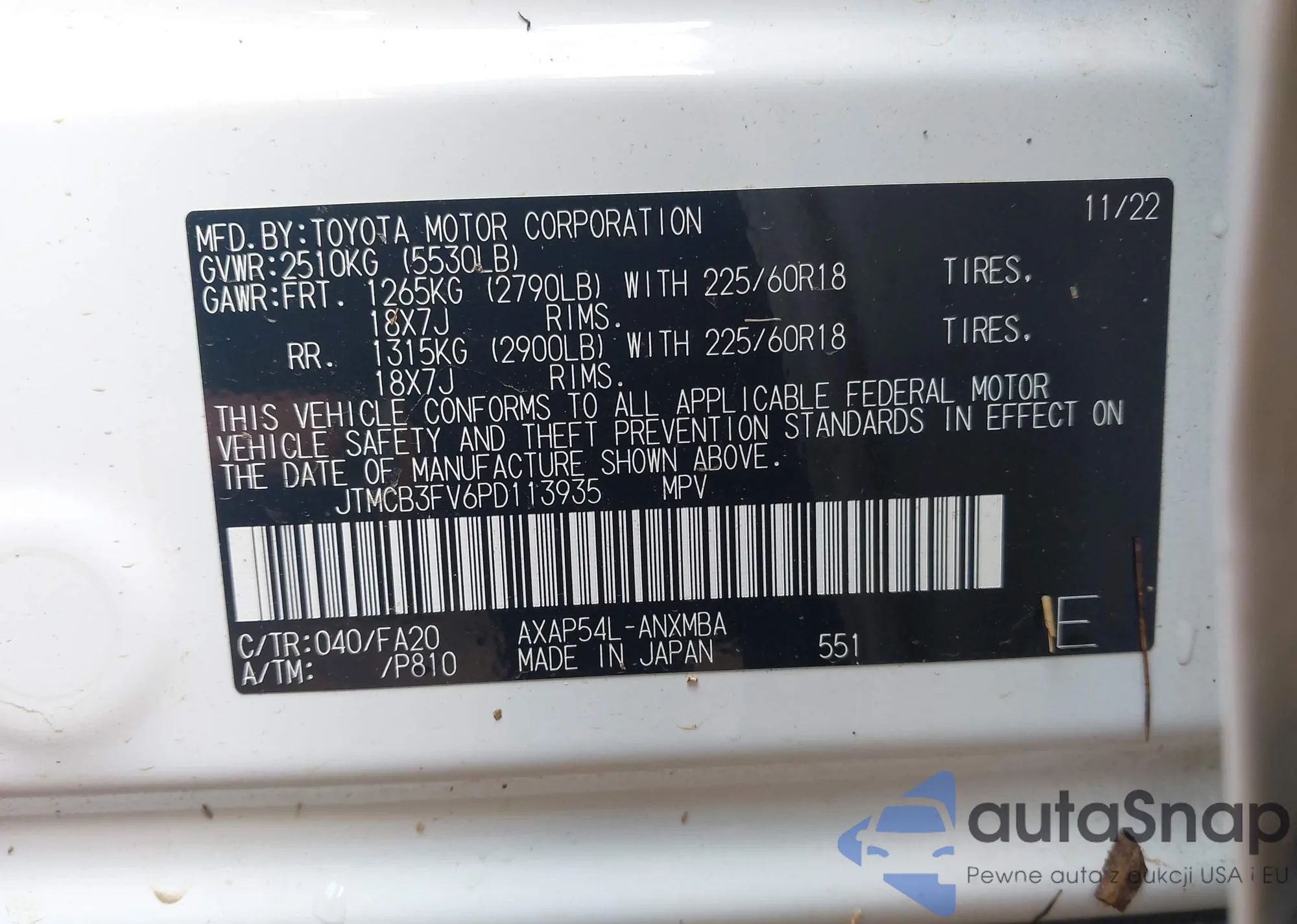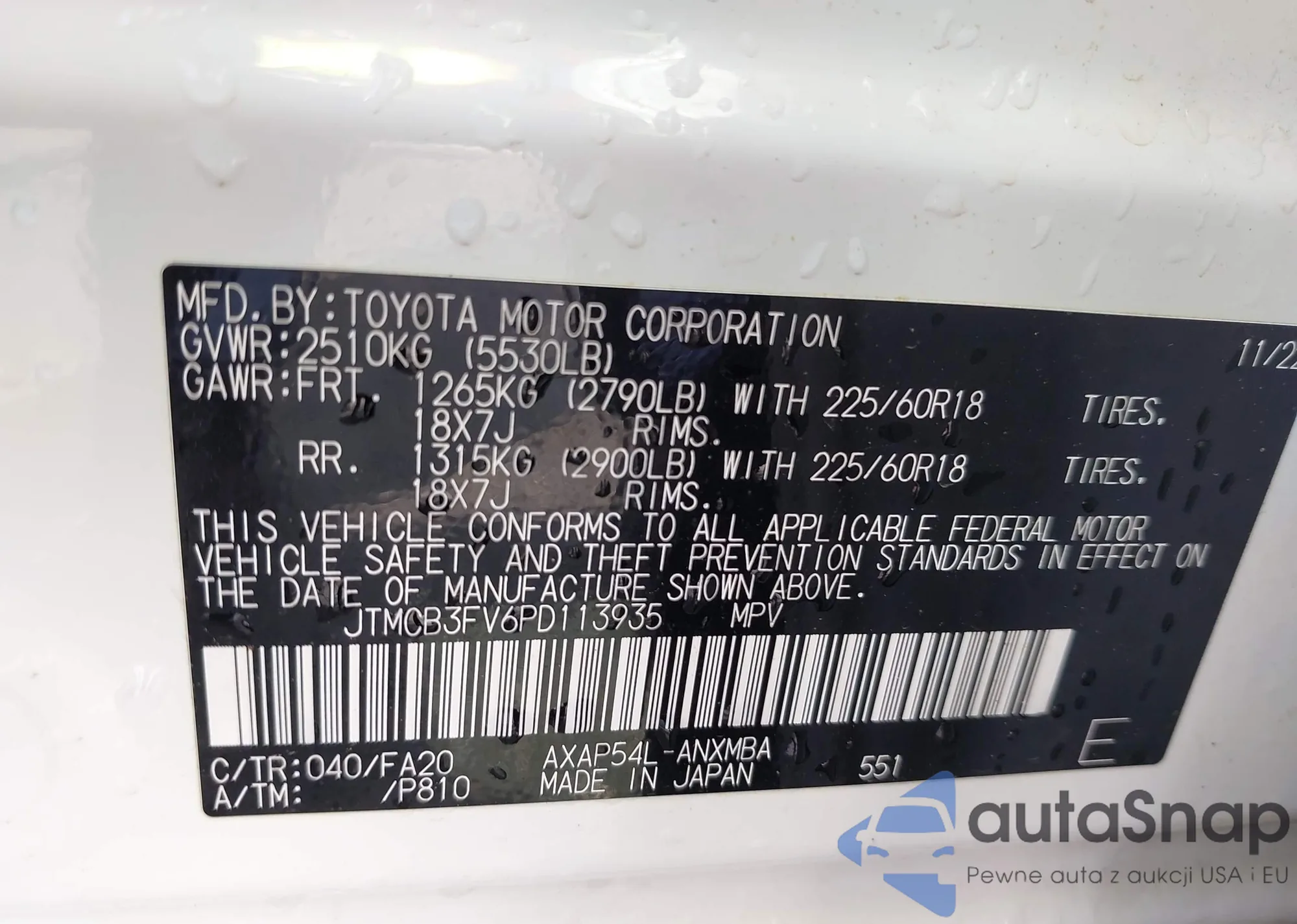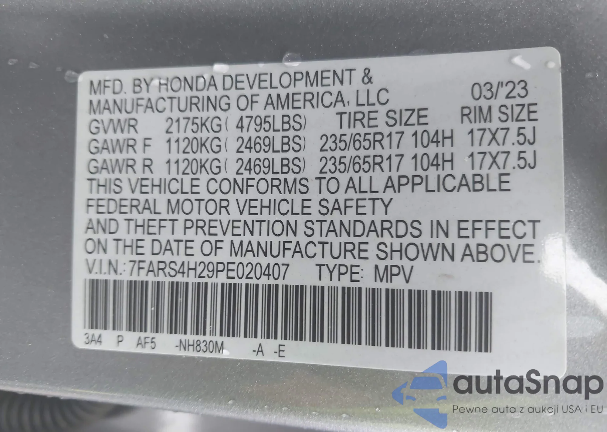 LOT: 42947773 VIN: 7FARS4H29PE020407