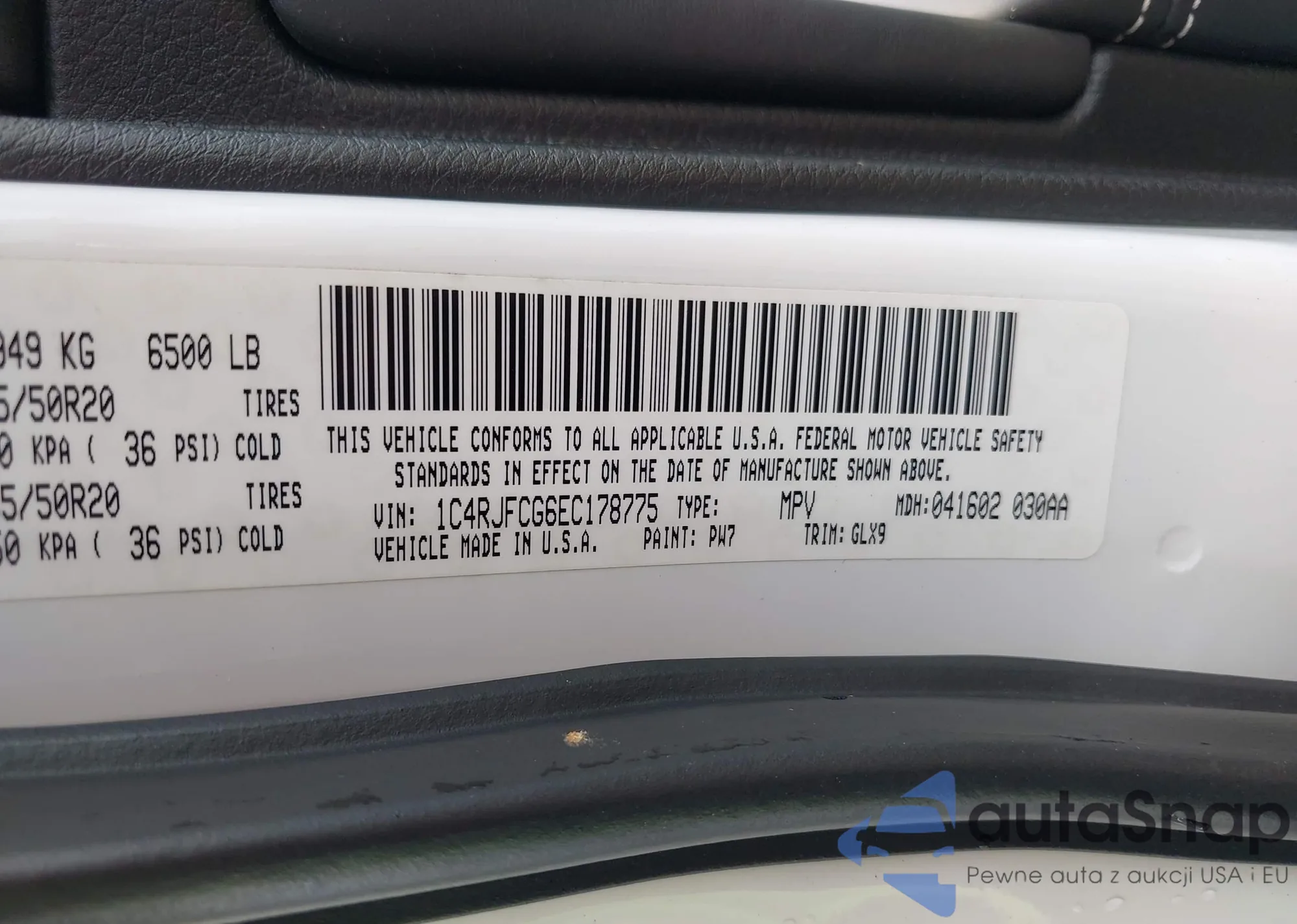 • VIN 1C4RJFCG6EC178775