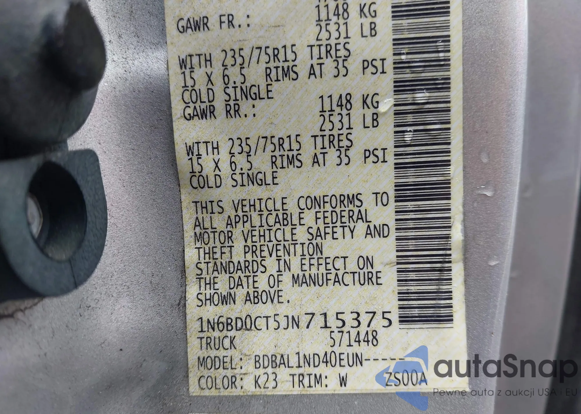 • VIN 1N6BD0CT5JN715375
