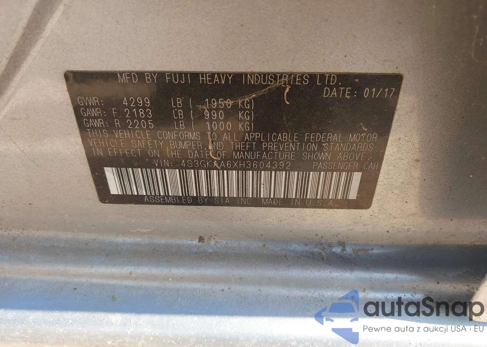 • VIN 4S3GKAA6XH3604392