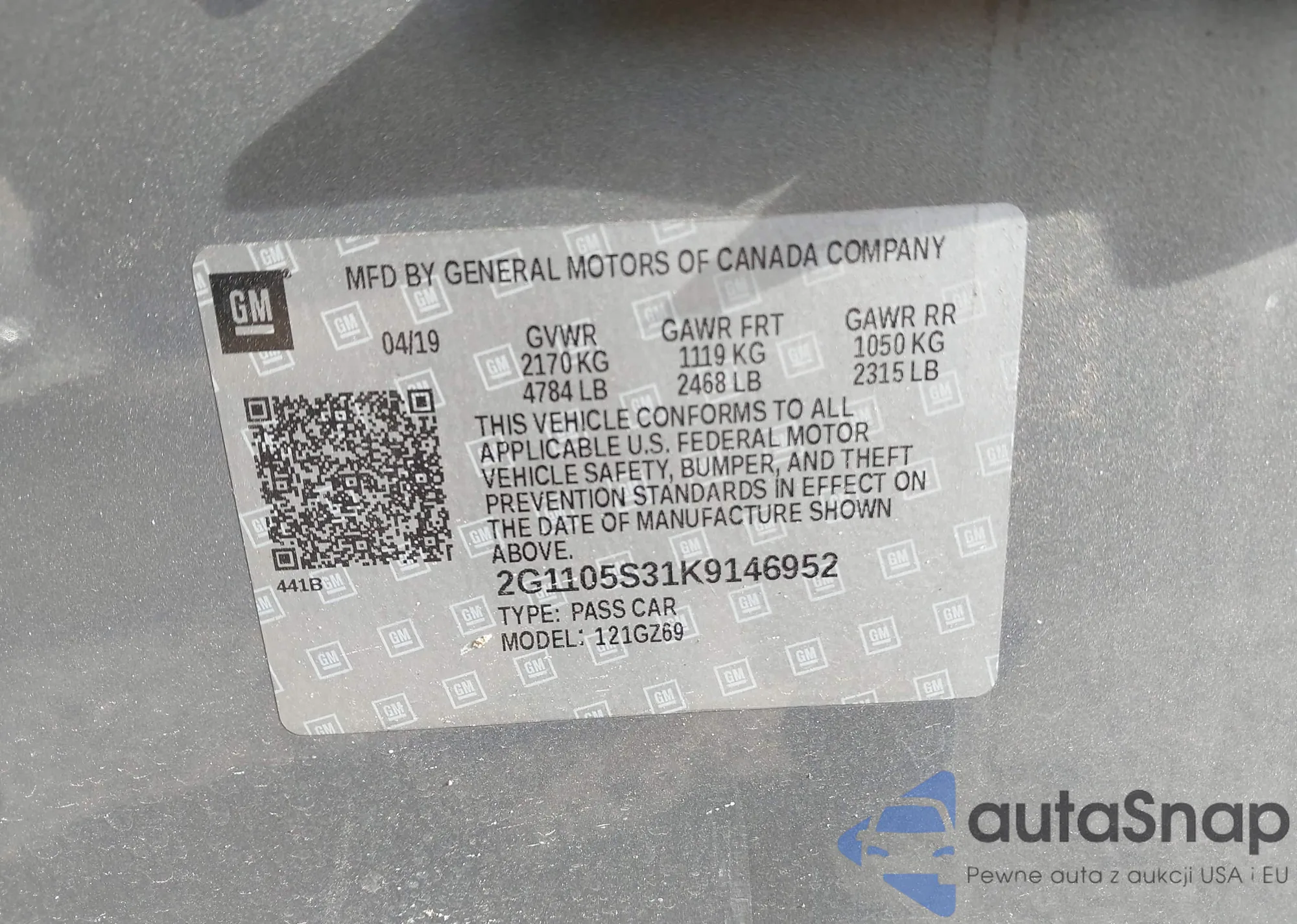 • VIN 2G1105S31K9146952