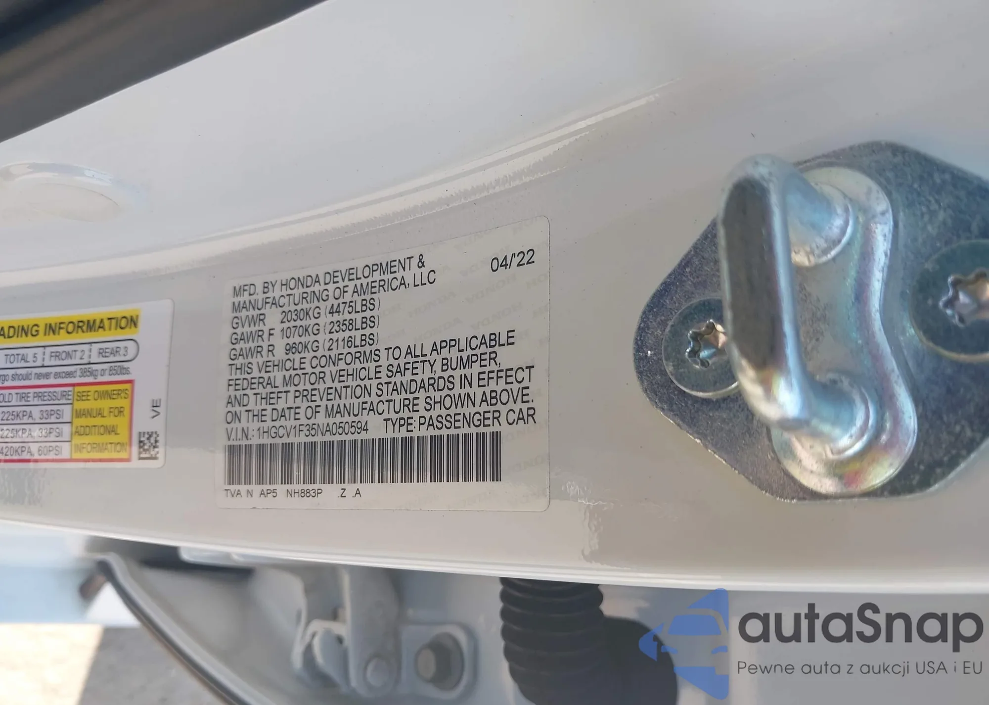 LOT: 42963956 VIN: 1HGCV1F35NA050594