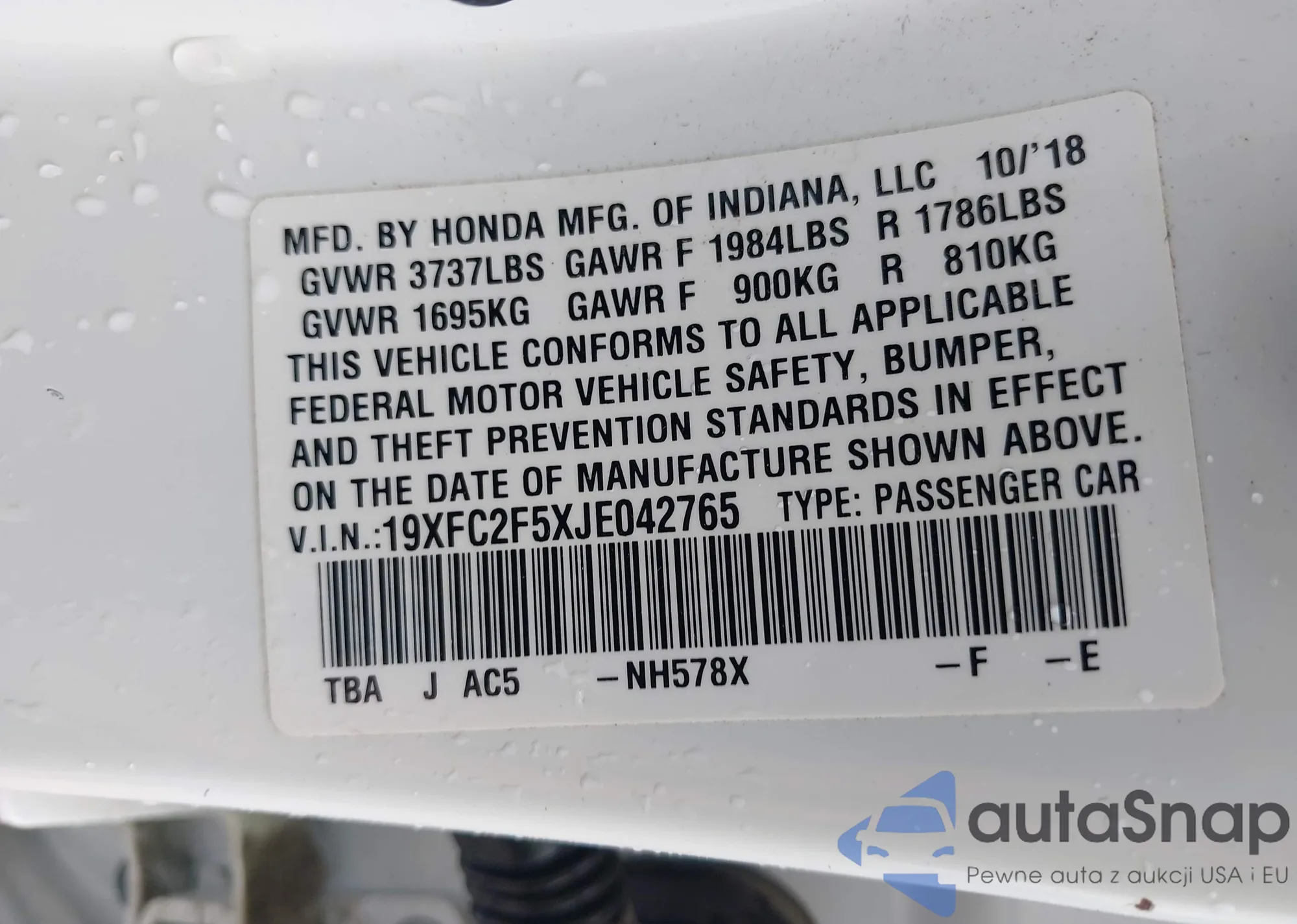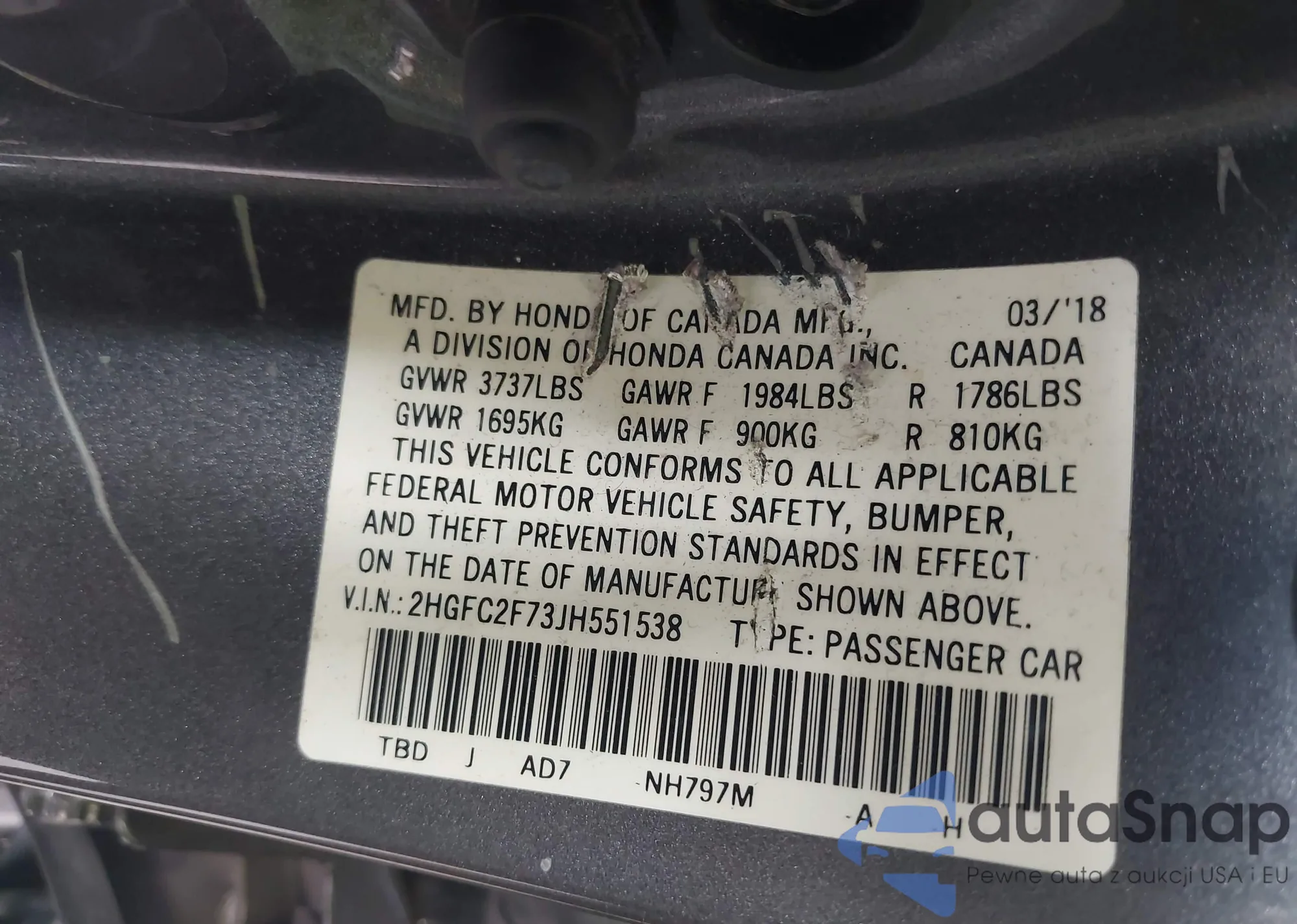 • VIN 2HGFC2F73JH551538