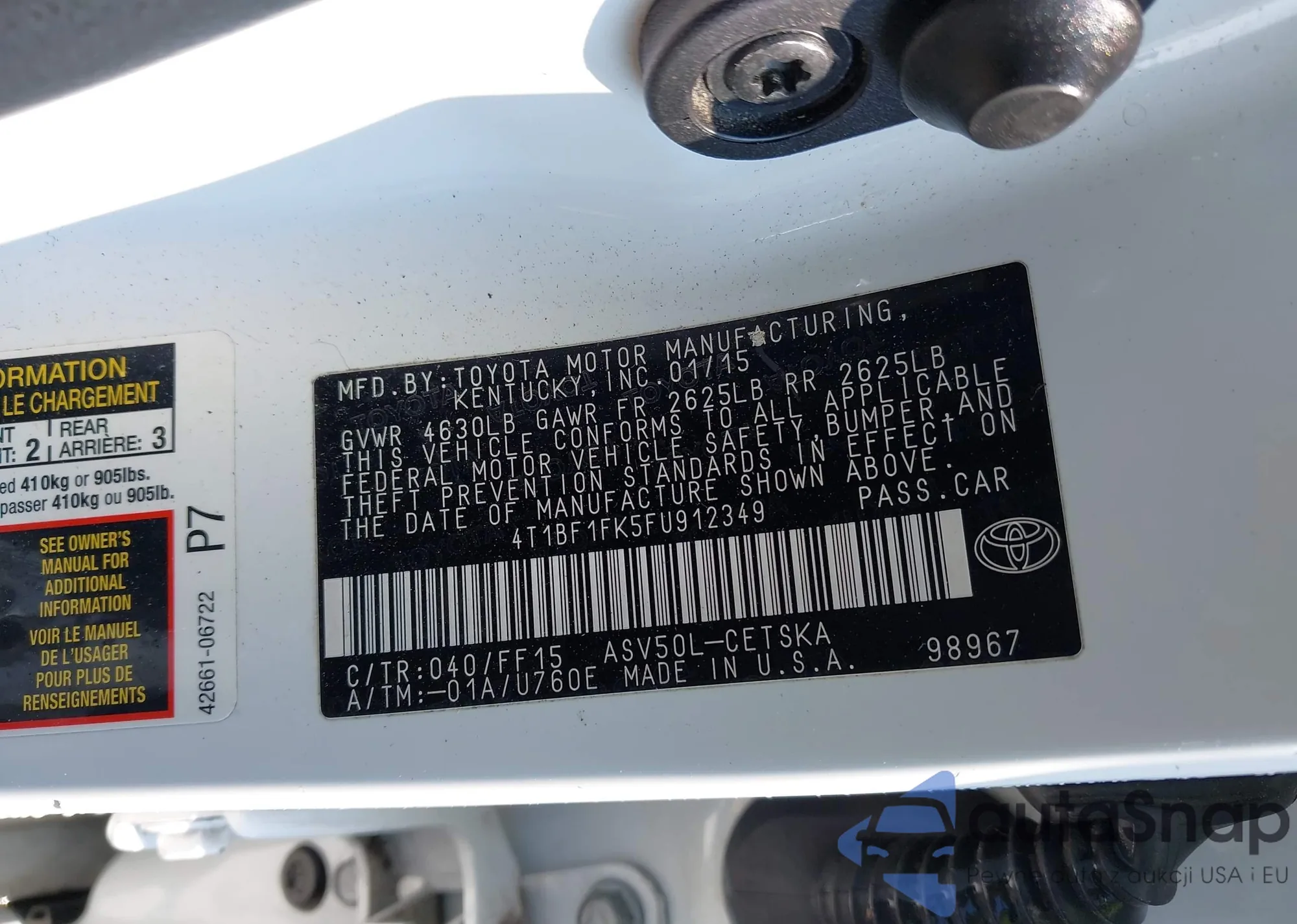 LOT: 43076471 VIN: JTEABFAJ9S5013243