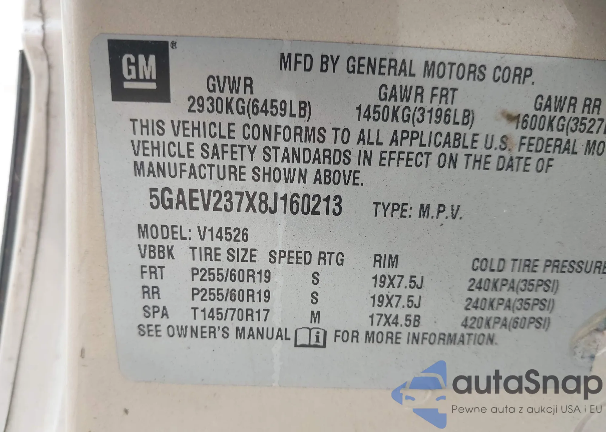 • VIN 5GAEV237X8J160213