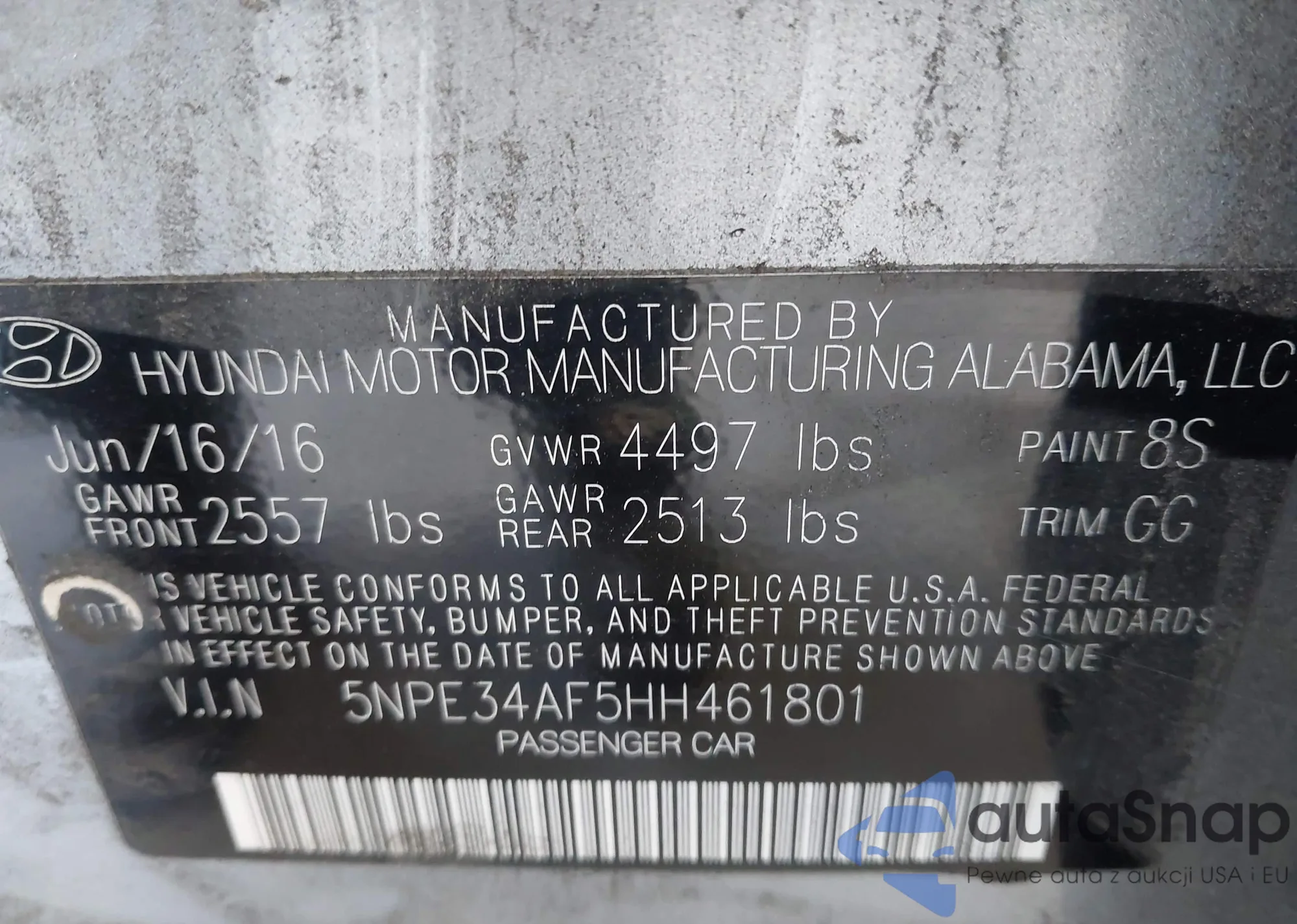 • VIN 5NPE34AF5HH461801