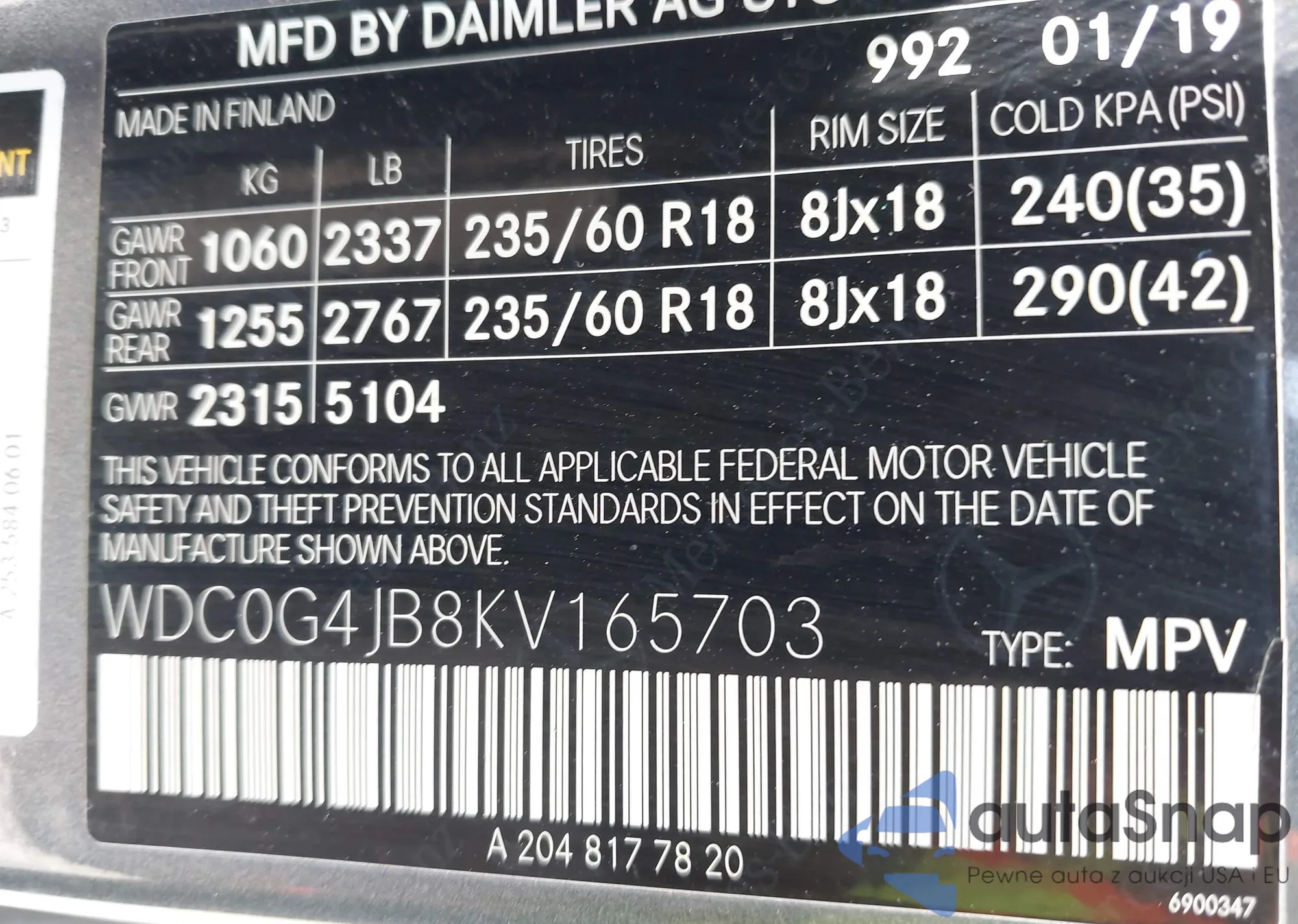 • VIN W1KEG1CB0PF012988