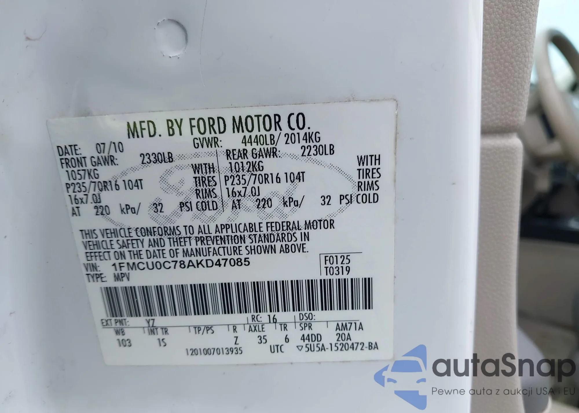 LOT: 43039737 VIN: 1FMCU0C78AKD47085